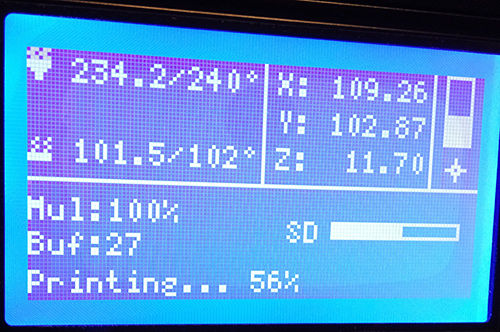 После этого принтер включается в нагрев 245/90, достигает этих температур и запускается печать.