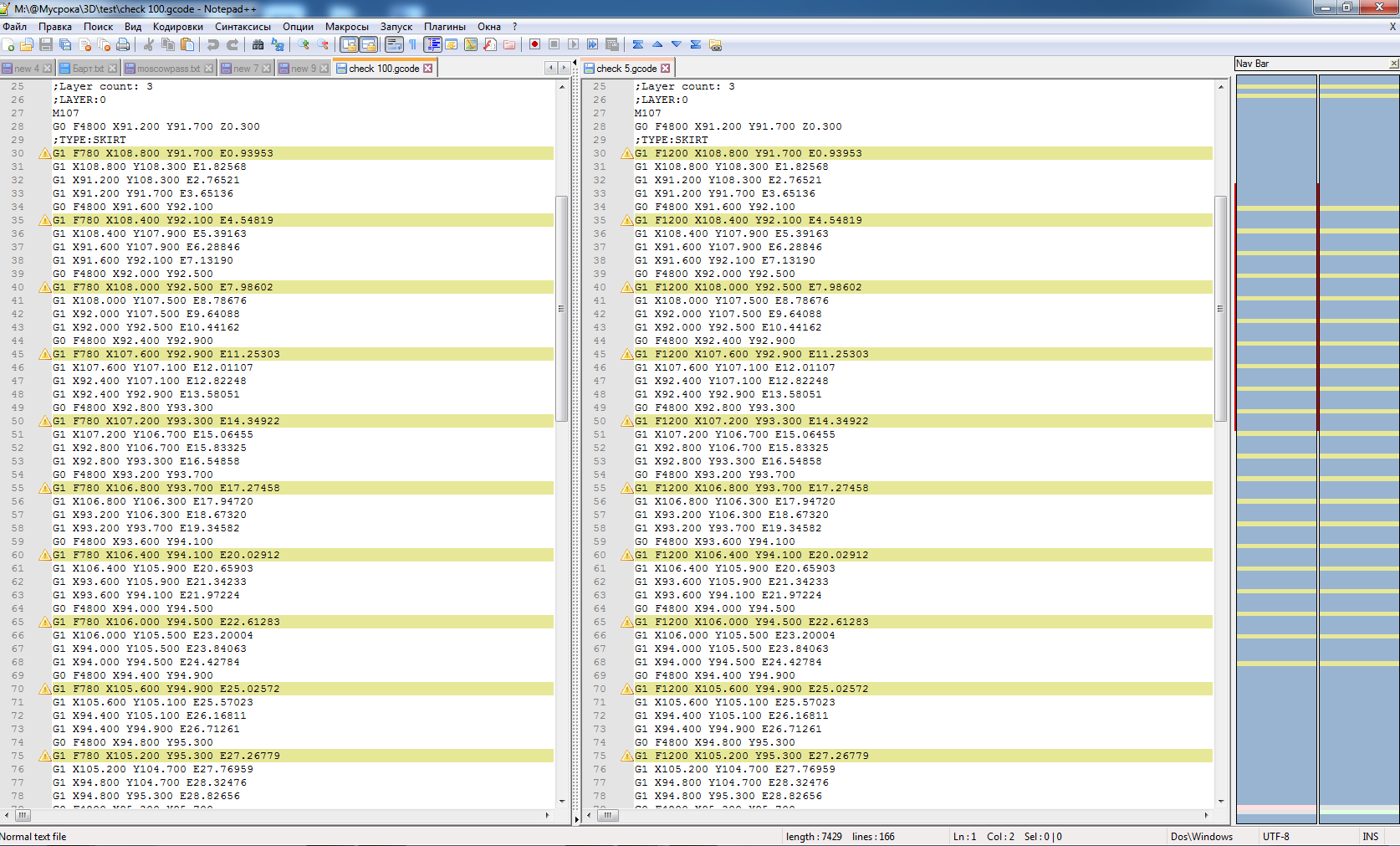 Так что принтер отрабатывает то что ему дают, вентилятор тут ни при чем, хотя на всякий случай я сравнил 2 файла, один 100сек на слой с вентилятором, второй 100сек на слой без вентилятора: