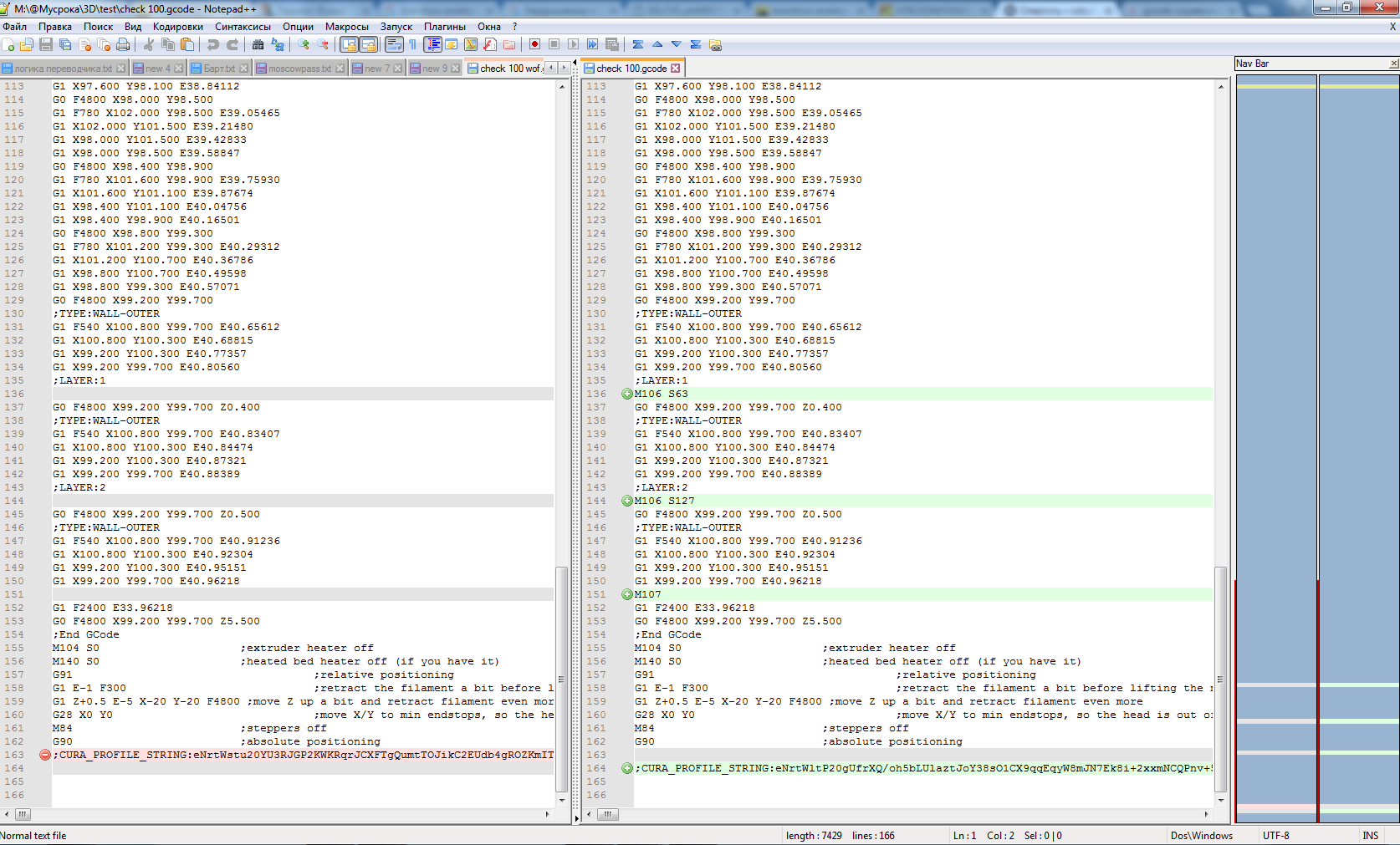 Так что принтер отрабатывает то что ему дают, вентилятор тут ни при чем, хотя на всякий случай я сравнил 2 файла, один 100сек на слой с вентилятором, второй 100сек на слой без вентилятора: