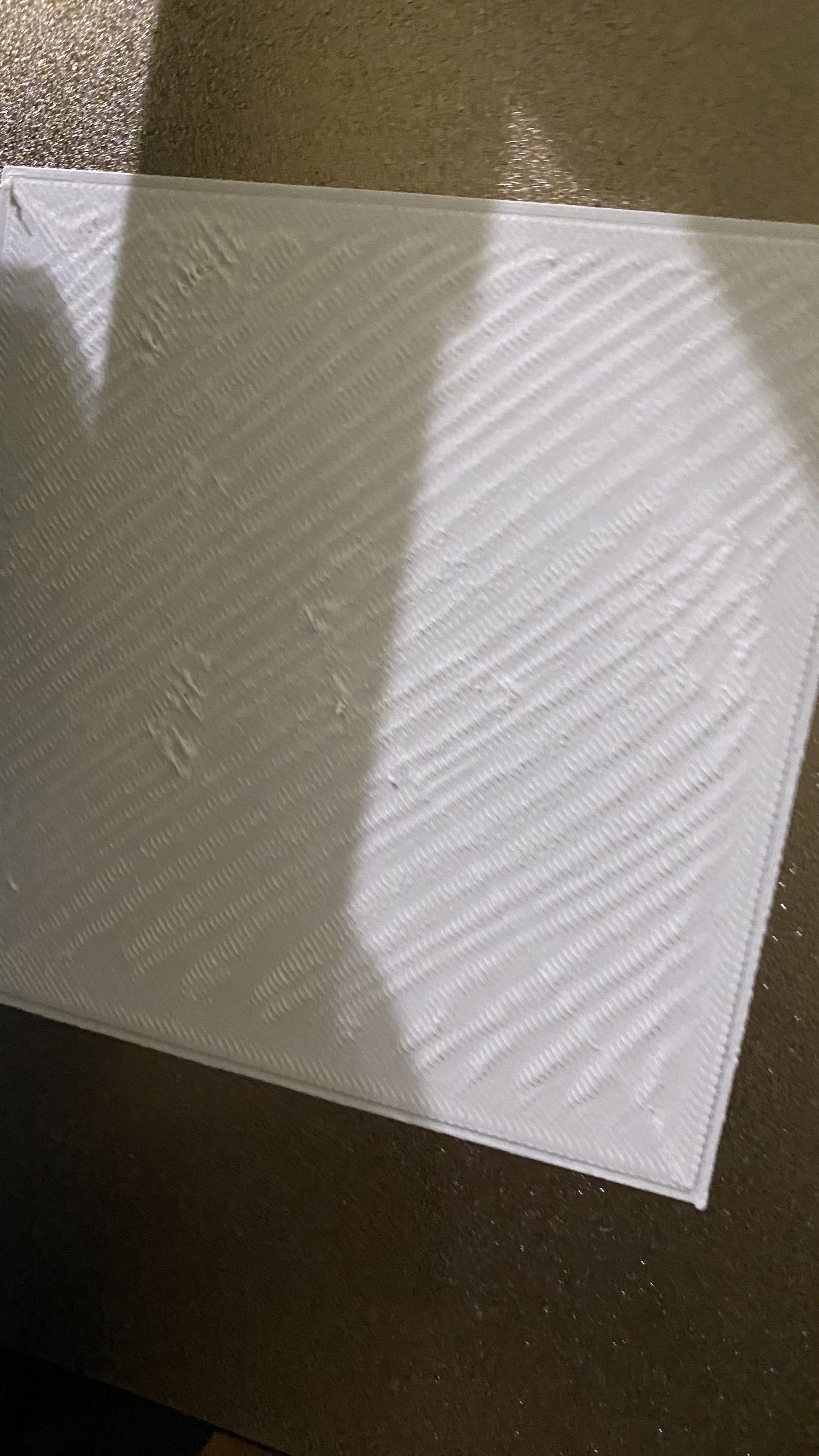 . F3z писал(а):Здравствуйте, подскажите пожалуйста, при печати первый слой как на фото(второе фото в процессе печати, третье уже отпечатано и вид на сторону которая лежала на столе), в чем причина? принтер anycubic kobra, pla, температура 200 , стол 60, высота слоя 0.15, первый слой 0.3 , стол ультрабаза, принтер новый, z-офсет листком калибровал на -1.95 . Боковые стенки нормально печатает, а вот низ.