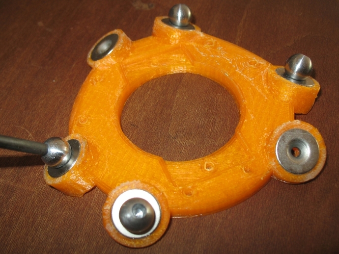 Да я видел. Только это бред. Без прокладки(ptfe или капролон) будет тереться и получится элипсоид. Как сделать отверстия в шарах я тоже хз. Вот пример такого исполнения: Может стоит использовать не магнитные шары, а стальные. Магнит же крепить внутри самого сокета. Вот что-то подобное http://www.thingiverse.com/thing:277755 Шары же стоит брать уже с резьбовым соединением папа или мама вот например:pamalofeev писал(а):А велосипед вообще не мудренный, некоторые вообще магниты клеют к торцам тяг безо всяких посадочных гнезд для шаров и алга!