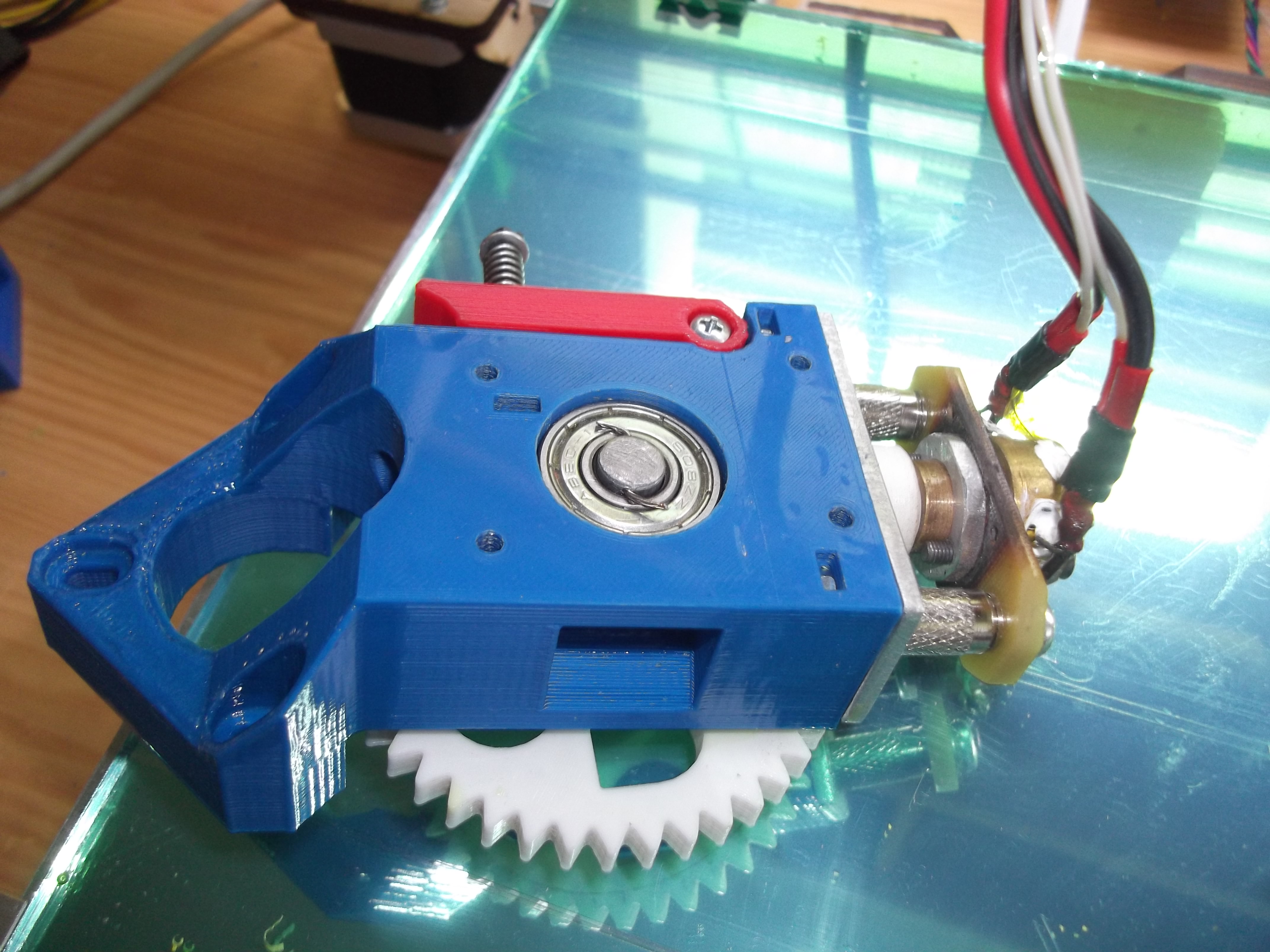 5. Сам экструдер педелелал под 608 подшипники и болт М8 с насечками. Старая шестеренка с насечками на болту М4 постоянно срывала стопорный винт и прокручивалась.