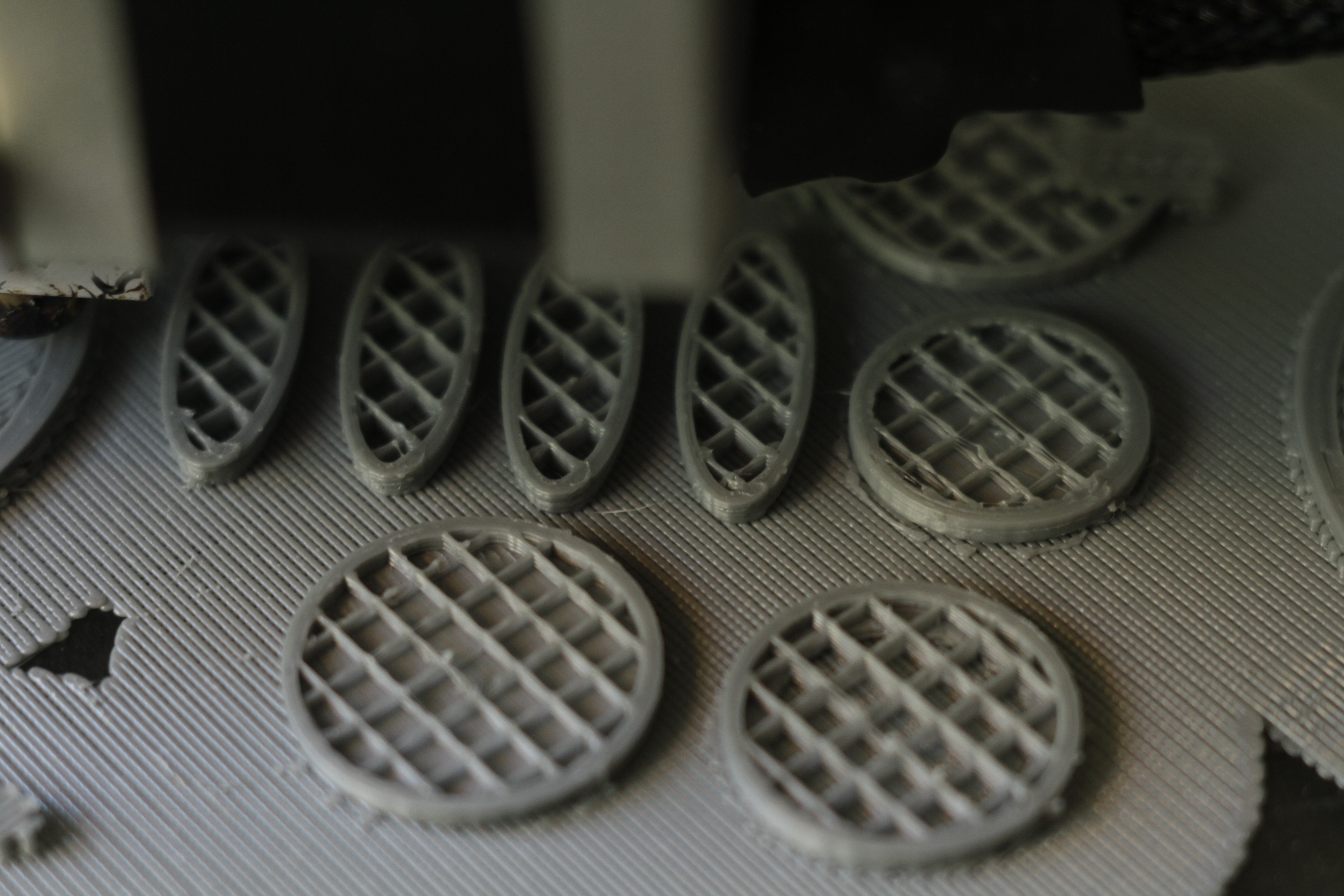 На фотографии где скорость 120мм/с печатает одну единственную деталь как Hollow. Геометрия абсолютно не такая как на 60мм/с. и появляются косые линии примерно через 1мм или чаще по диагонали. Получается фактура и текстура годовых колец дерева. Есть сильная закономерность. На круглых поверхностях. И мне кажется это не экструдер.Хотя я могу ошибаться.
