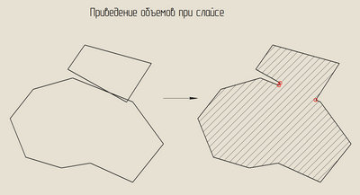 Анекдот в том, что в принципе слайсер должен сам определять точки пересечения и перестраивать сам слайс. Это технически абсолютно реально, ничего тут нет такого, просто это еще надо сделать. Точно так же, как и определение близко расположенных граней для объединения в одну. Это работа на плоскости - это не расчет пересечений в объемах с последующими сложными оптимизациями.