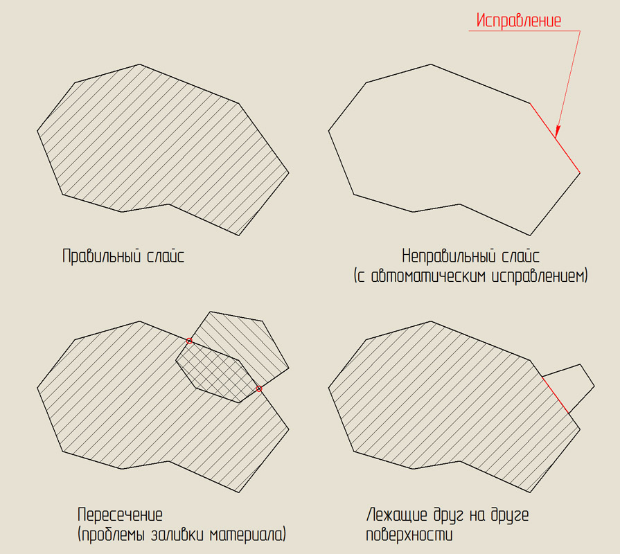 Анекдот в том, что в принципе слайсер должен сам определять точки пересечения и перестраивать сам слайс. Это технически абсолютно реально, ничего тут нет такого, просто это еще надо сделать. Точно так же, как и определение близко расположенных граней для объединения в одну. Это работа на плоскости - это не расчет пересечений в объемах с последующими сложными оптимизациями.