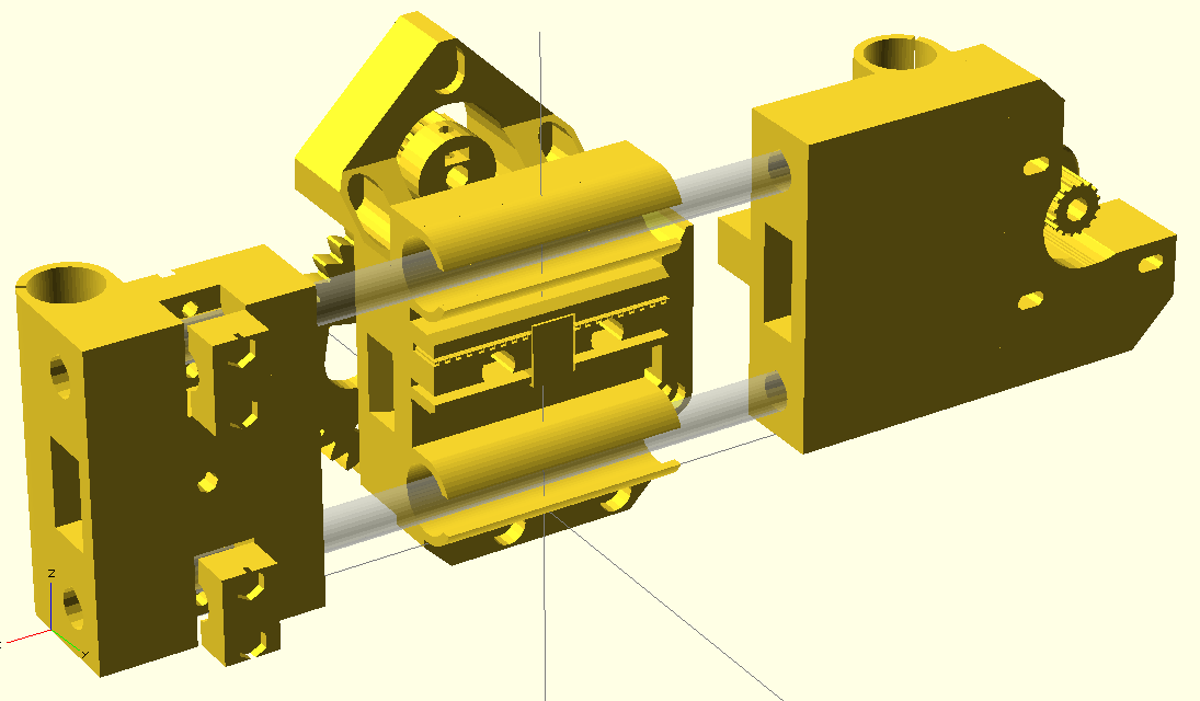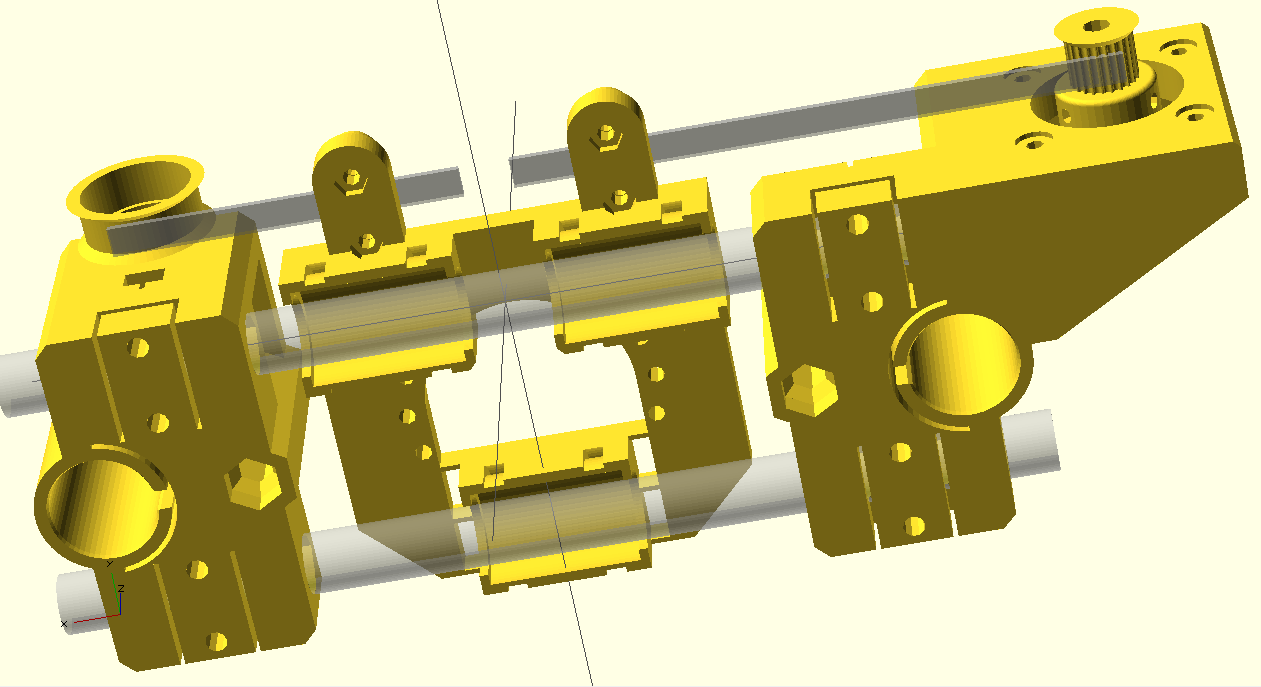 1 почему бы не использовать последнюю версию прюши и3? те которые с хомутами для подшипников. Они проще, оптимальнее и требуют меньше пластика. Заточены под бриджовый слайсер.