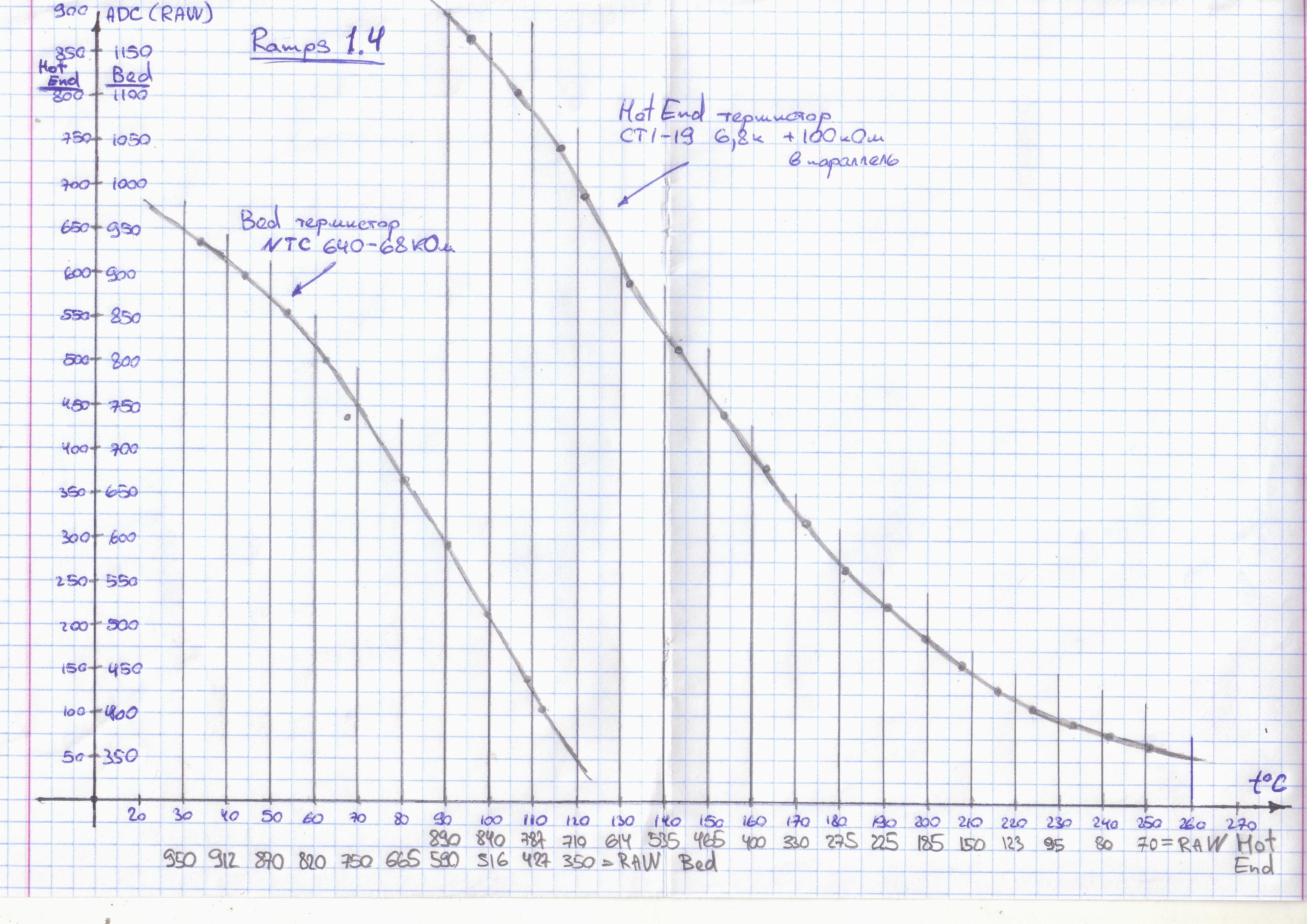 Совершенно случайно купил советский термистор СТ1-19. Испытал, и он мне очень понравился. Не предназначен для измерения малых температур, но для хотенда подошел идеально. Внизу обладает сверхбольшой крутизной (20 град - 1,6 МОм, а на 150 град падает до неск кОм), но в диапазоне 150-250 градусов вполне адекватен. Пришлось ему в параллель установить резистор 100кОм, чтоб его контроллер хоть как-то видел при комнатной температуре. Компактный, выполнен в стекле. Купил за 12 грн/шт. Если кому интересно - могу выслать. Ну ясно заплатите за пересылку сами и мне за беспокойство. Это не в качестве бизнеса. Просто я знаю, что например в Луганске нормальный термистор не купишь ни за какие деньги. Их просто нет.