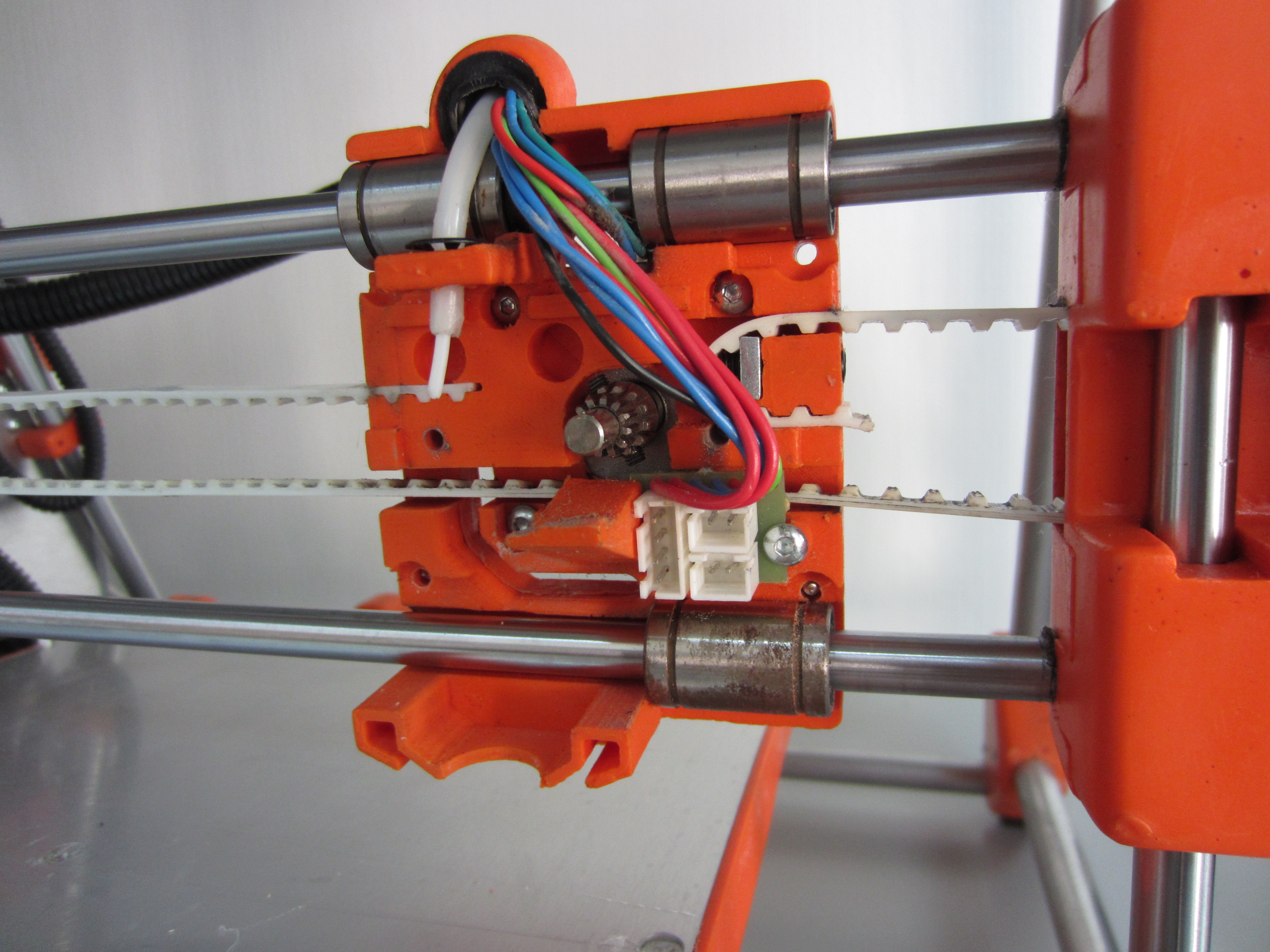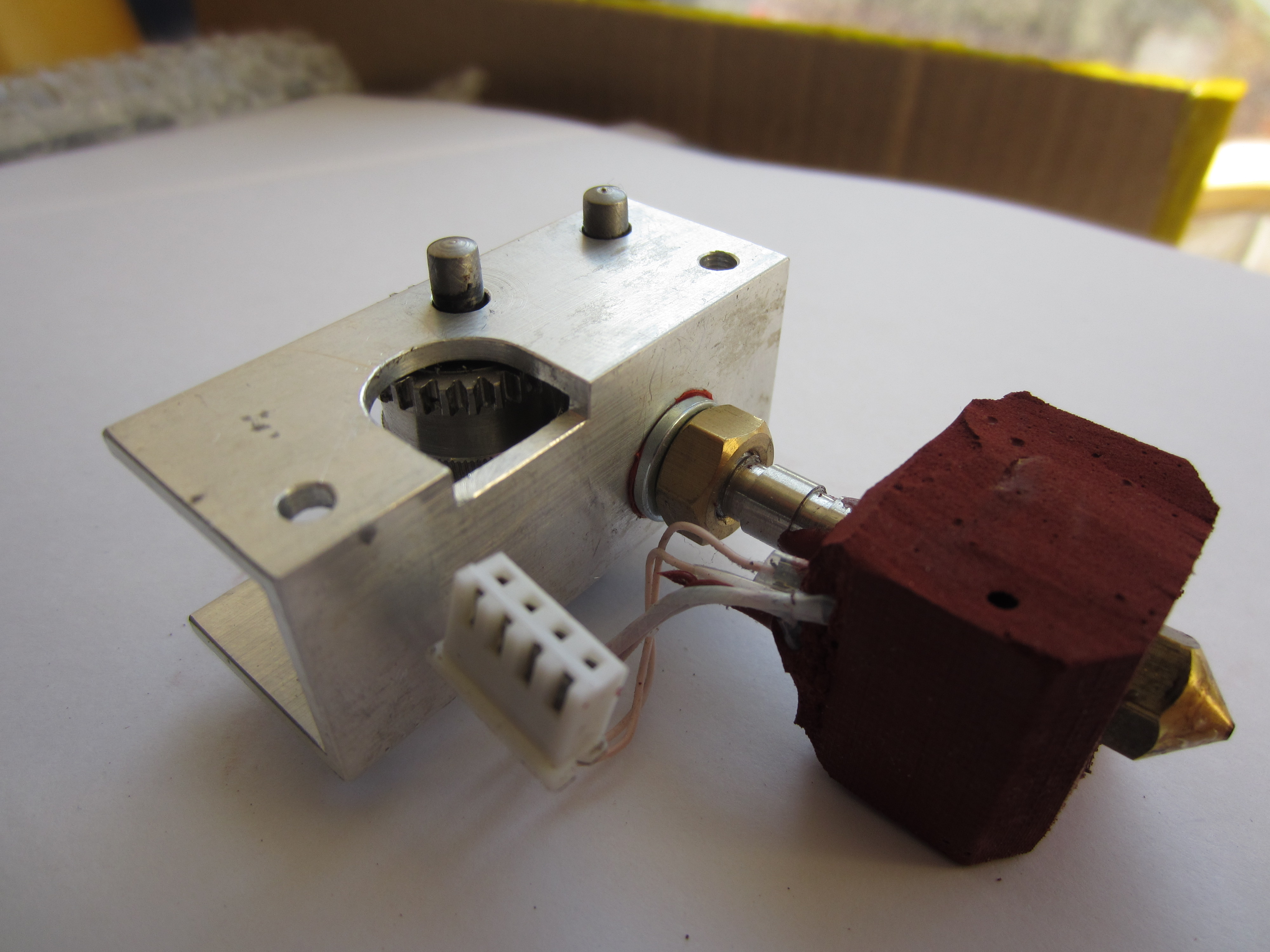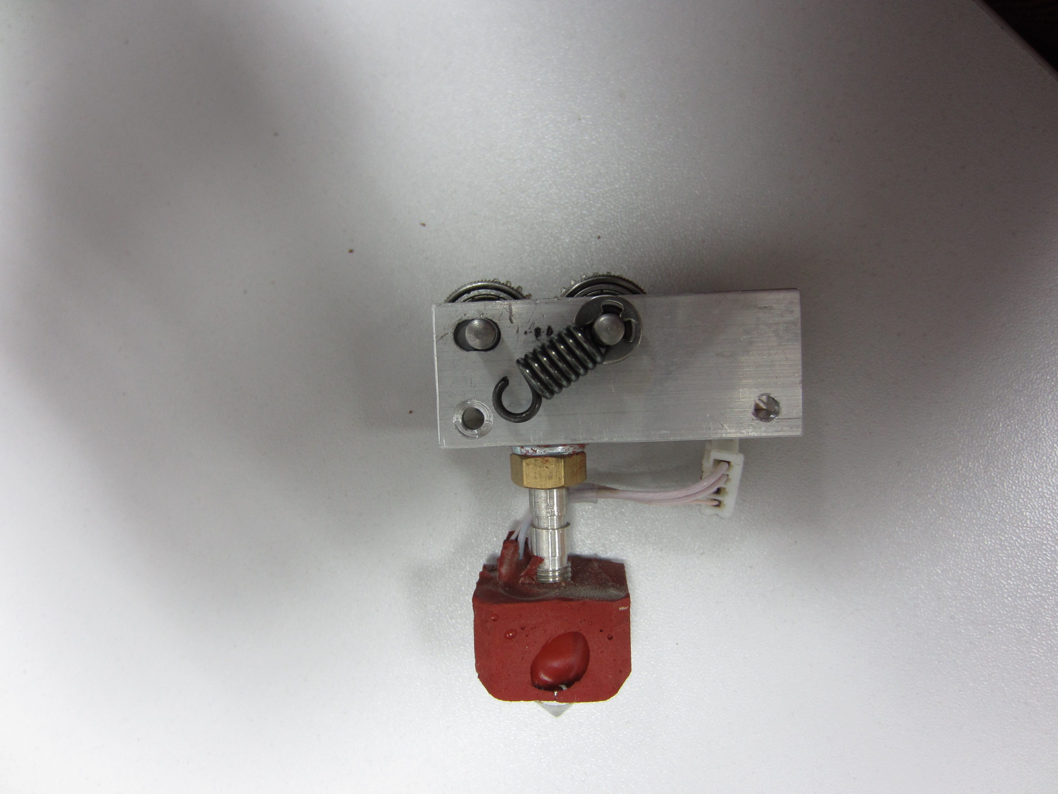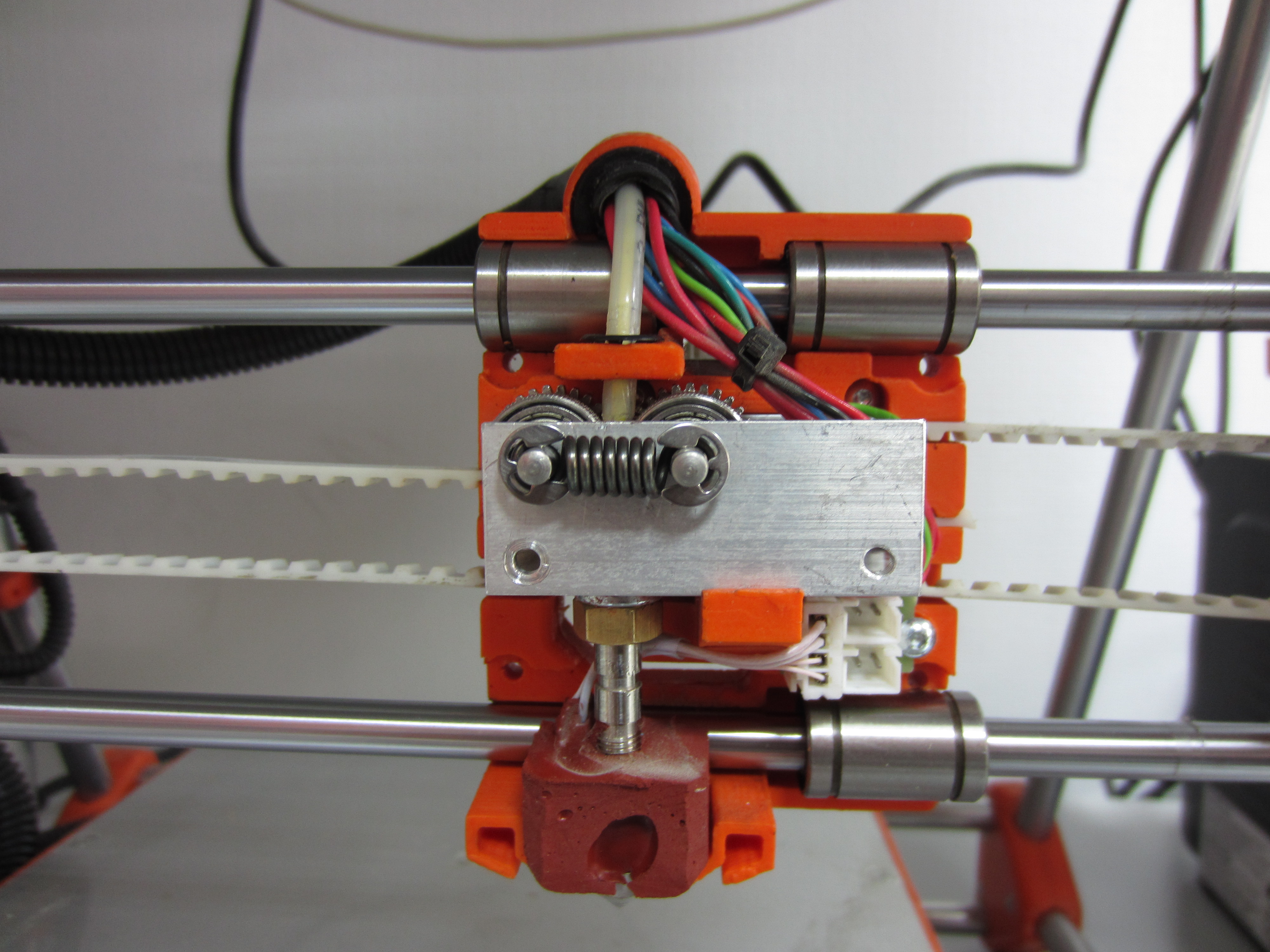 тем не менее экструдер считается не забиваемым и если зазор до стола меньше, чем высота печатаемого слоя или сопло прям вплотную на первом слое упирается в стол, то такой экструдер не вгрызается в пруток и пруток просто проскальзывает, не проталкиваясь в сопло. Как только зазор становится достаточным, чтобы выдавить пластик то экструдер продолжает давить. В классическом варианте с толкающим винтом с насечками экструдер при таком раскладе начал бы вгрызаться в пруток и соответственно пришлось бы вынимать нить. Так что ребятам из Зеленограда стоит отдать должное за интересное решение и стабильную работу такого экструдера. Это я вам как пользователь двух данных принтеров говор. Механика отличная!