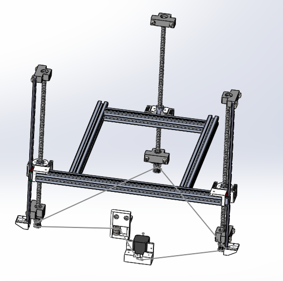 ):goskonec писал(а):Применительно к моей конструкции: пластины будут ползать по двум направляющим; шпилька закреплена снизу через муфту к ШД, а сверху - ни к чему, дабы устранить все неровности самой шпильки и несоосности гаек (шпилька тонкая, а направляющие толстые, шпильку просто изогнет, но стол останется в ровном положении). Про люфт, устраняемый силой тяжести, в моей конструкции это будет действовать только при подъеме стола. А вот при спуске, допускаю, что из-за неровной шпильки (ну и наверняка несоосных направляющих) стол будет на направляющих слегка заедать и как бы догонять гайку, а вот это "догоняние" и даст люфт, который и призвана устранить верхняя гайка.