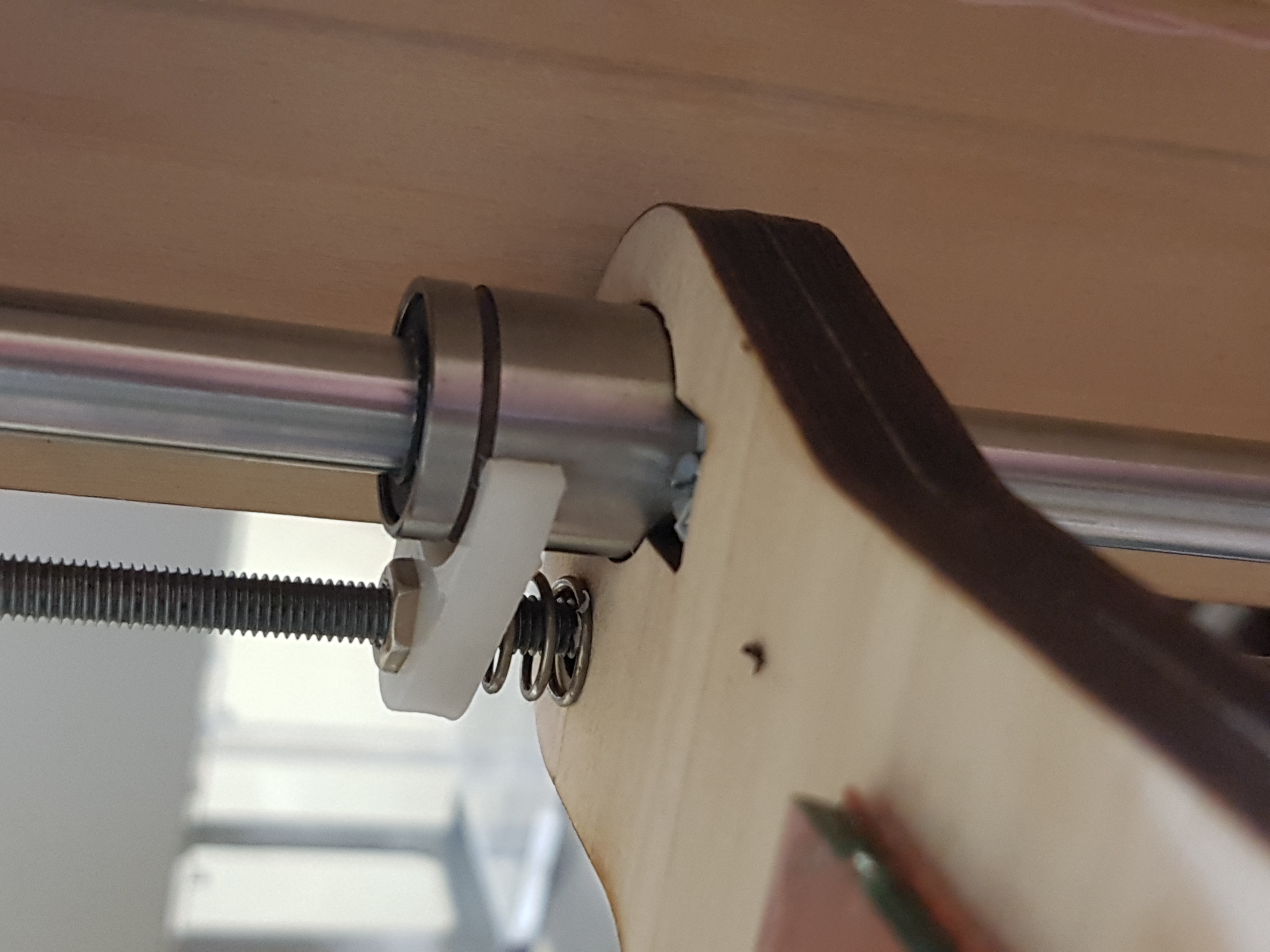 в целом от гайки нужно добиться две вещи : отсутствие люфта по вертикали (посадка внатяг, или две гайки через пружину или ... много вариантов), и чтобы вертикальная ось гайки не гуляла прецессией при вращении вала (как например закреплена на фотке выше, у how_eee)