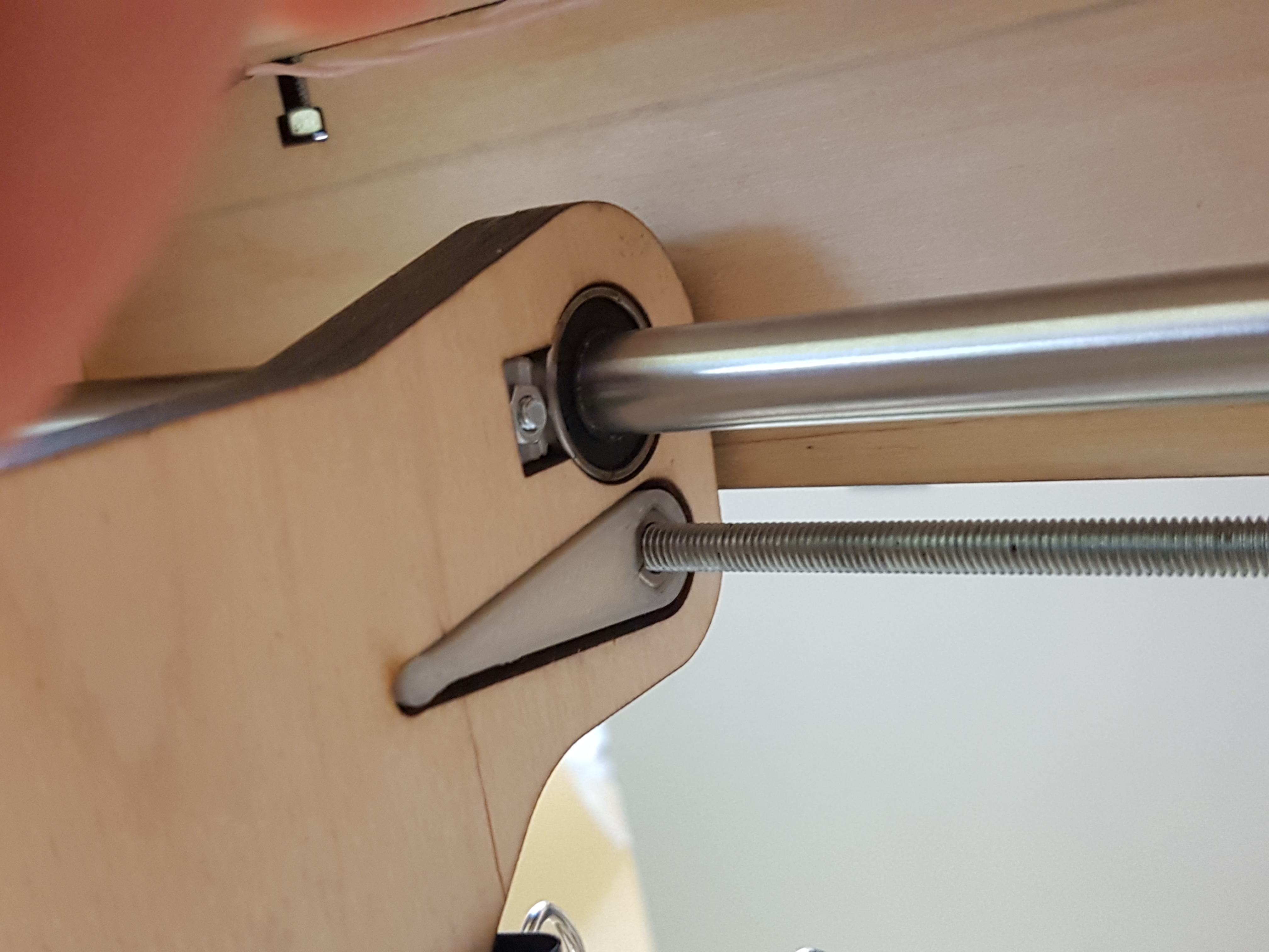 ну и самое главное : платформа должна быть очень жестко закреплена на каретках (подшипниках) и не закреплена относительно валов, они должны иметь свободный ход XY, поскольку биения при подъёме есть везде и в шпильке и в дорогущих ШВП.