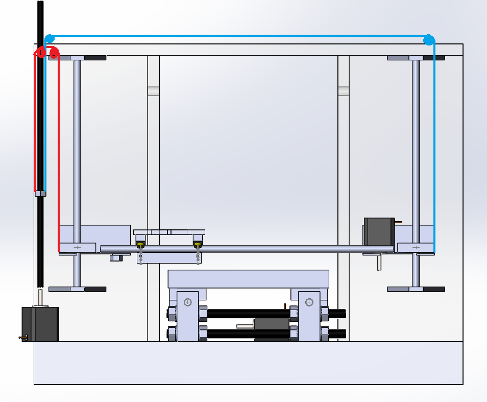 А чем плох вариант: один двигатель, одна шпилька и поднимаем оба края каретки через тросики? Идея такая: тросики одним концом крепятся к гайке, а вторым к каретке.