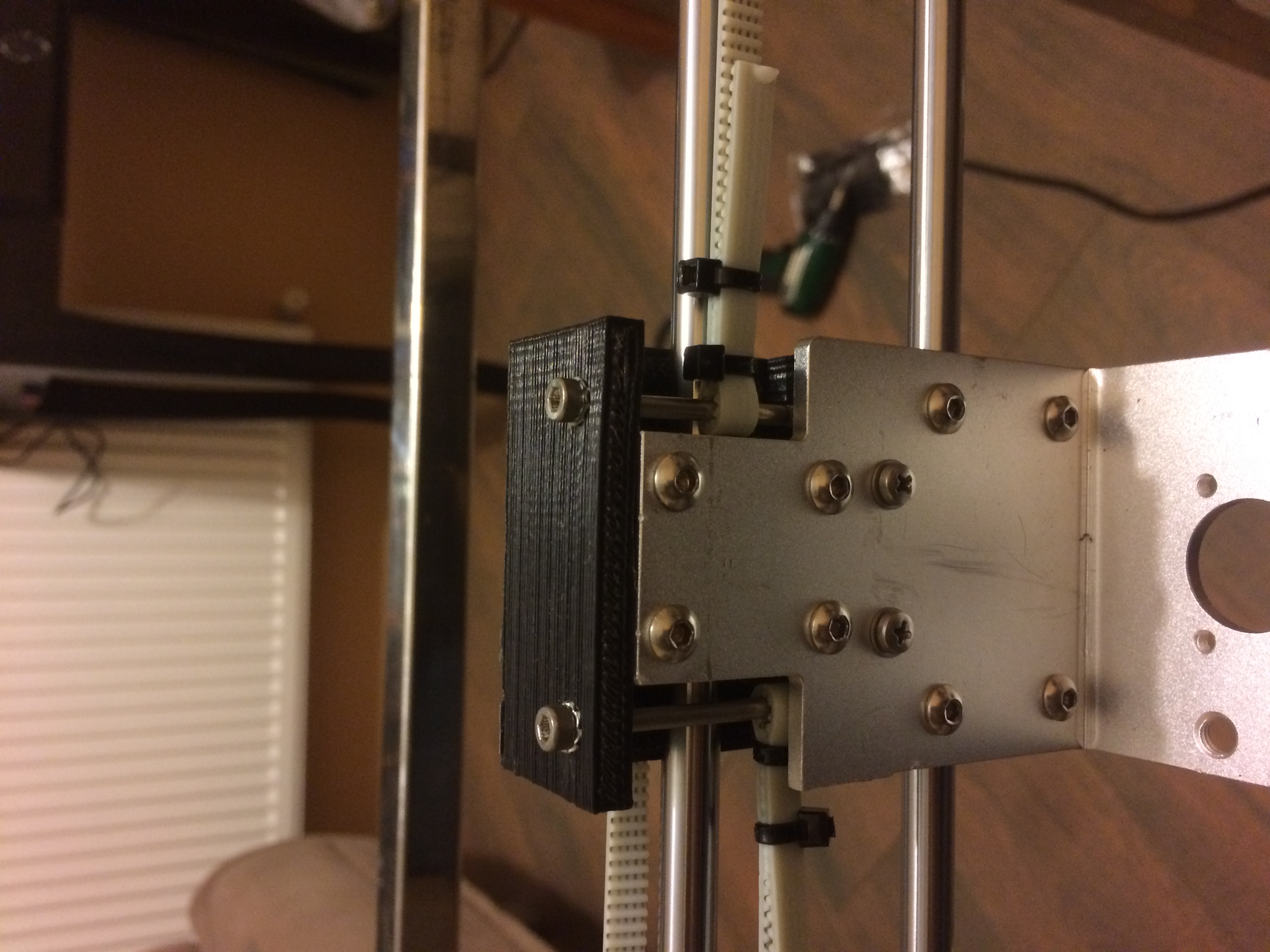 Тогда в принципе понятен замысел перемещения мотора по горизонтали - чтобы ровно выставить ремень, который от мотора к каретке Y идет.