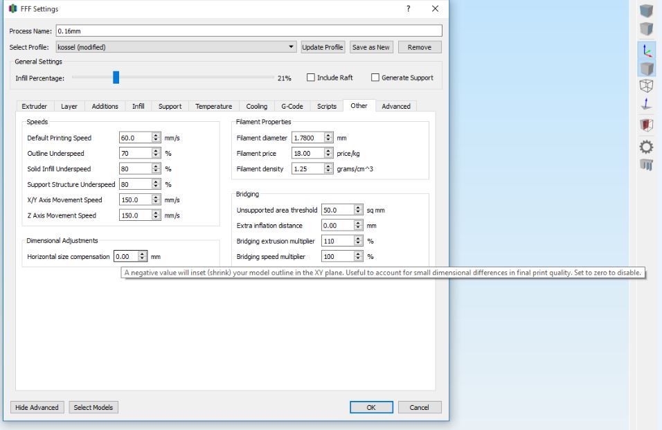 Что-то у меня подозрение, что с софтом что-то. Уже не первый раз печатает деталь, а внутренние отверстия даже и не отверстия вовсе... Как буд-то пластика вообще на периметр не льёт, да и то что льёт, получается как "вразбег" не попадает один на другой. В прежней версии вроде небыло такого, или я что-то накрутил (хотя вряд ли, вроде ничего не менял а импортировал настройки прежней версии)