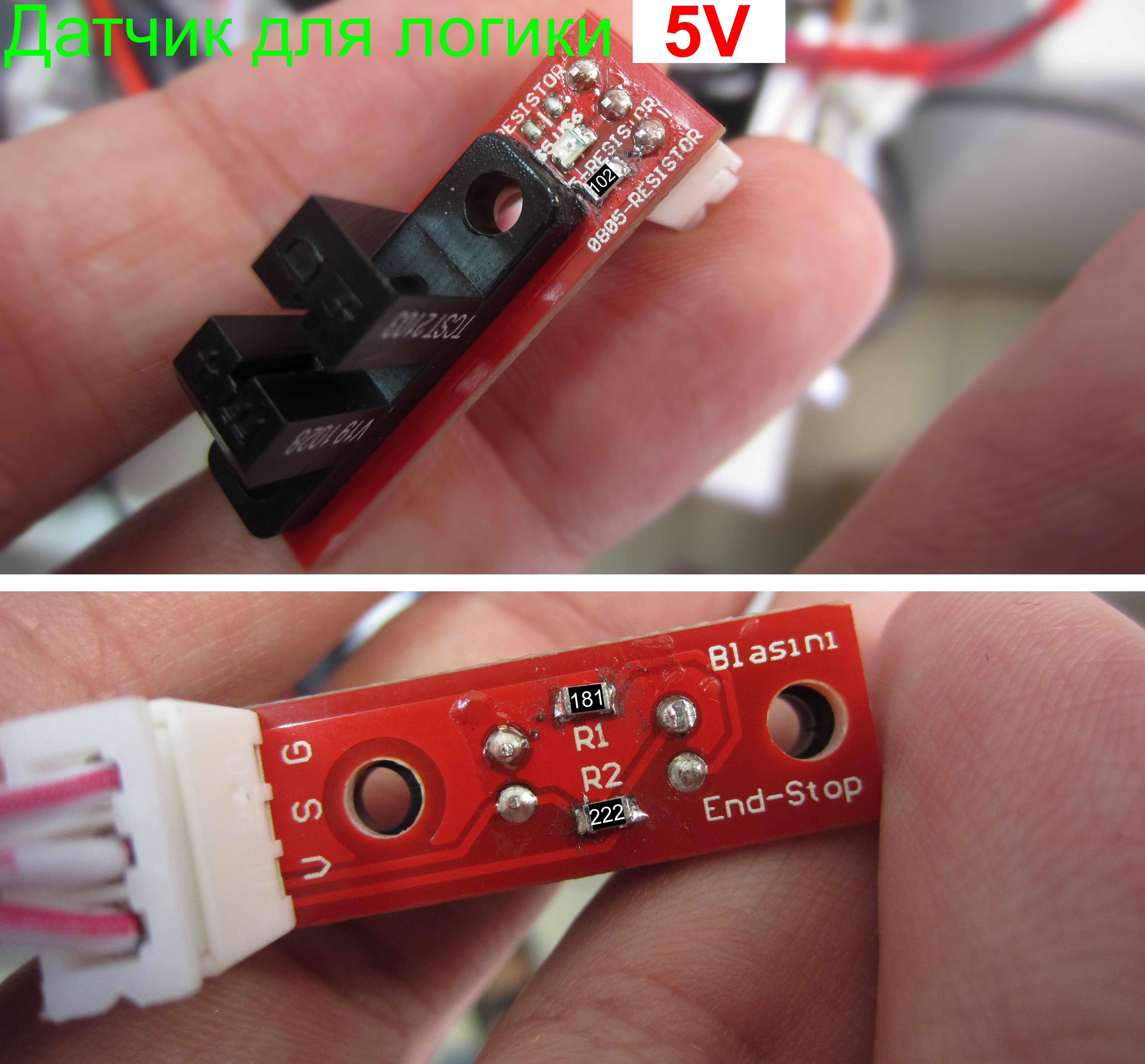 Здравствуйте друзья. Недавно довелось мне с коллегами подключать оптические датчики на RepRap. Были приобретены вот такие датчики http://ru.aliexpress.com/item/6PCS-High ... 02639.html. Такие датчики в отличие от механических подключаются по трем проводам т.к. имеют свой подтягивающий резистор. Маркировка проводов есть на корпусе датчика, и соответствующая на корпусе RAMPS контроллера.