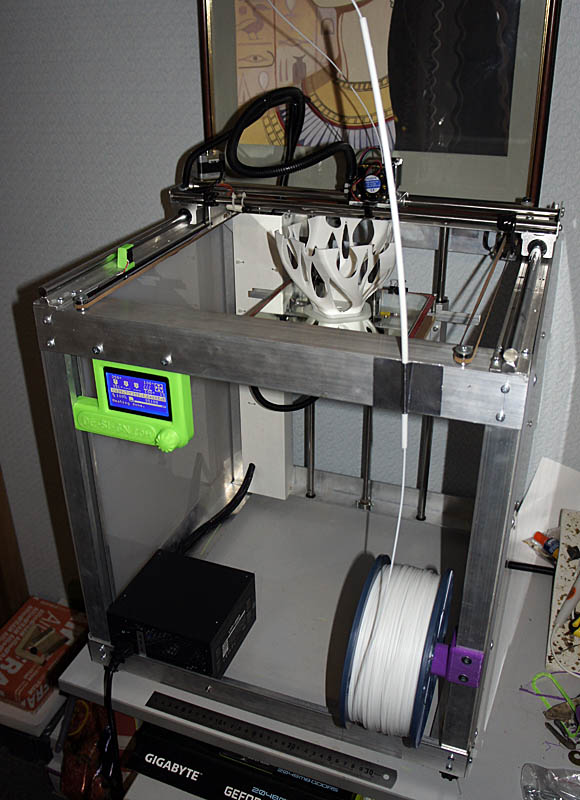 но потом решил оставить стол неподвижным (по Z очень редко).Такая конструкция жестче, поле печати больше.