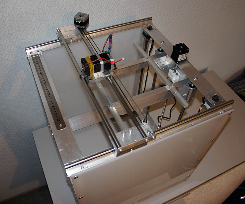 Вот мой принтер.Валы 12 мм (X и Z), моторы и ремни от струйников.
