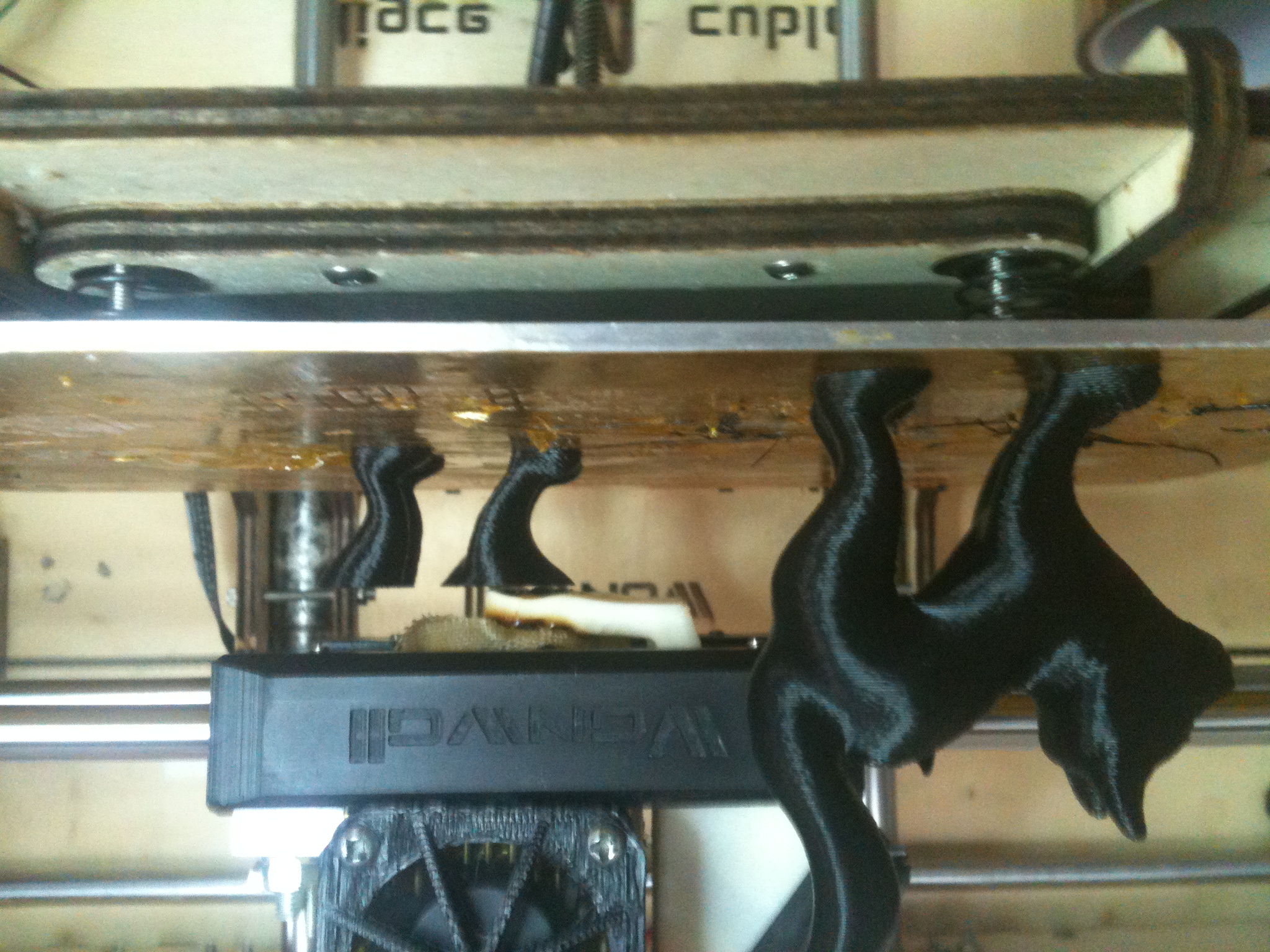 Maksium писал(а):У меня как раз наоборот, печть PLA не очень идет. ABS в принципе беспроблемный материал. Фото тоже с пылу, с жару. Стандартная кошечка на хелувин. Температура пластика 230 (обычно 210, но черный при этой температуре не давится) скорость 80, слой 0,3, сопло 0,4, платформа 110. Рафта и поддержек нет. Рядом уже готовая.