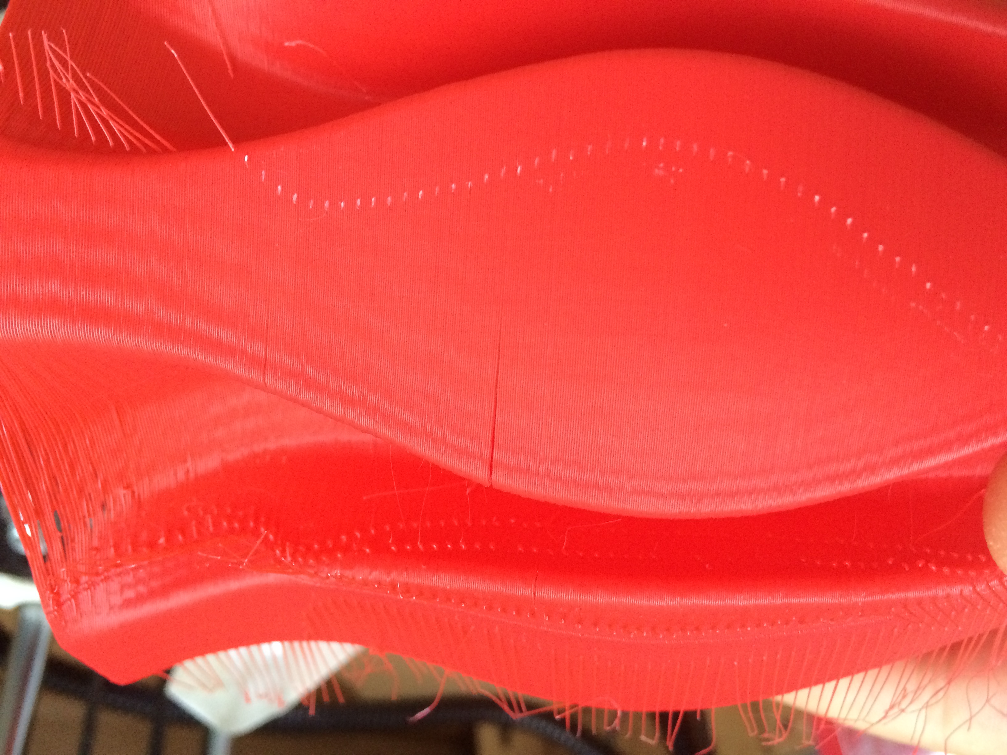 Я пробовал простой картонный короб, я сделал автокоррекцию и первый слой идеальный и хорошо прилипший, я пробовал маленькую скорость печати, пробовал с обдувом и без, пробовал в 2 периметра, пробовал в 4 периметра, тщетно. Пробовал 230С, пробовал 240С, 250С. Тщетно.