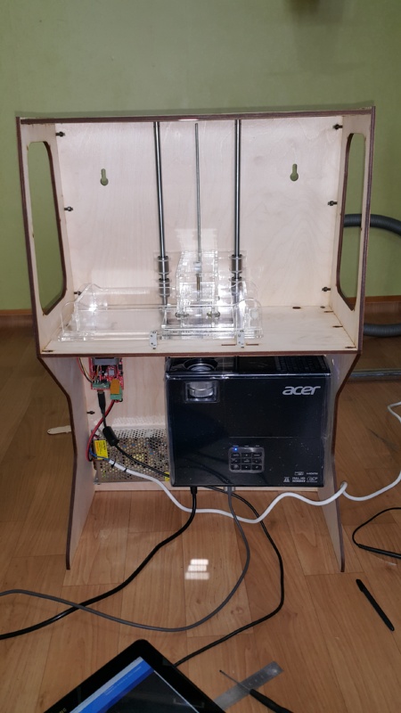 Чуть переделать щётку, поменять мотор на сдвиг, этот слабоват, греется. Доделать окошки и дверь. Ну и повесить на стену, на столе места нет. Так уже у меня три принтера и ещё экструдер, ставить уже некуда.