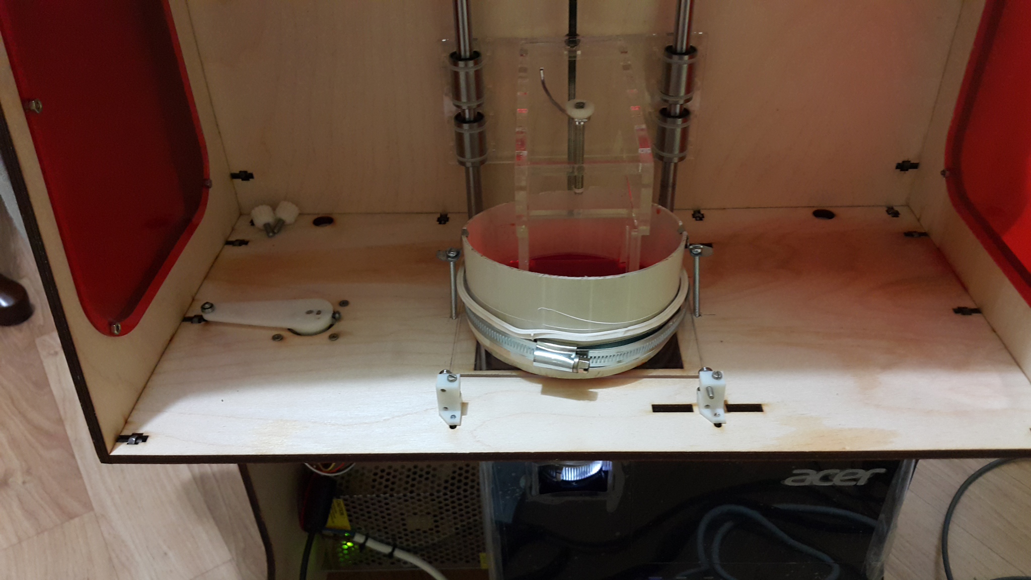 Чуть переделать щётку, поменять мотор на сдвиг, этот слабоват, греется. Доделать окошки и дверь. Ну и повесить на стену, на столе места нет. Так уже у меня три принтера и ещё экструдер, ставить уже некуда.