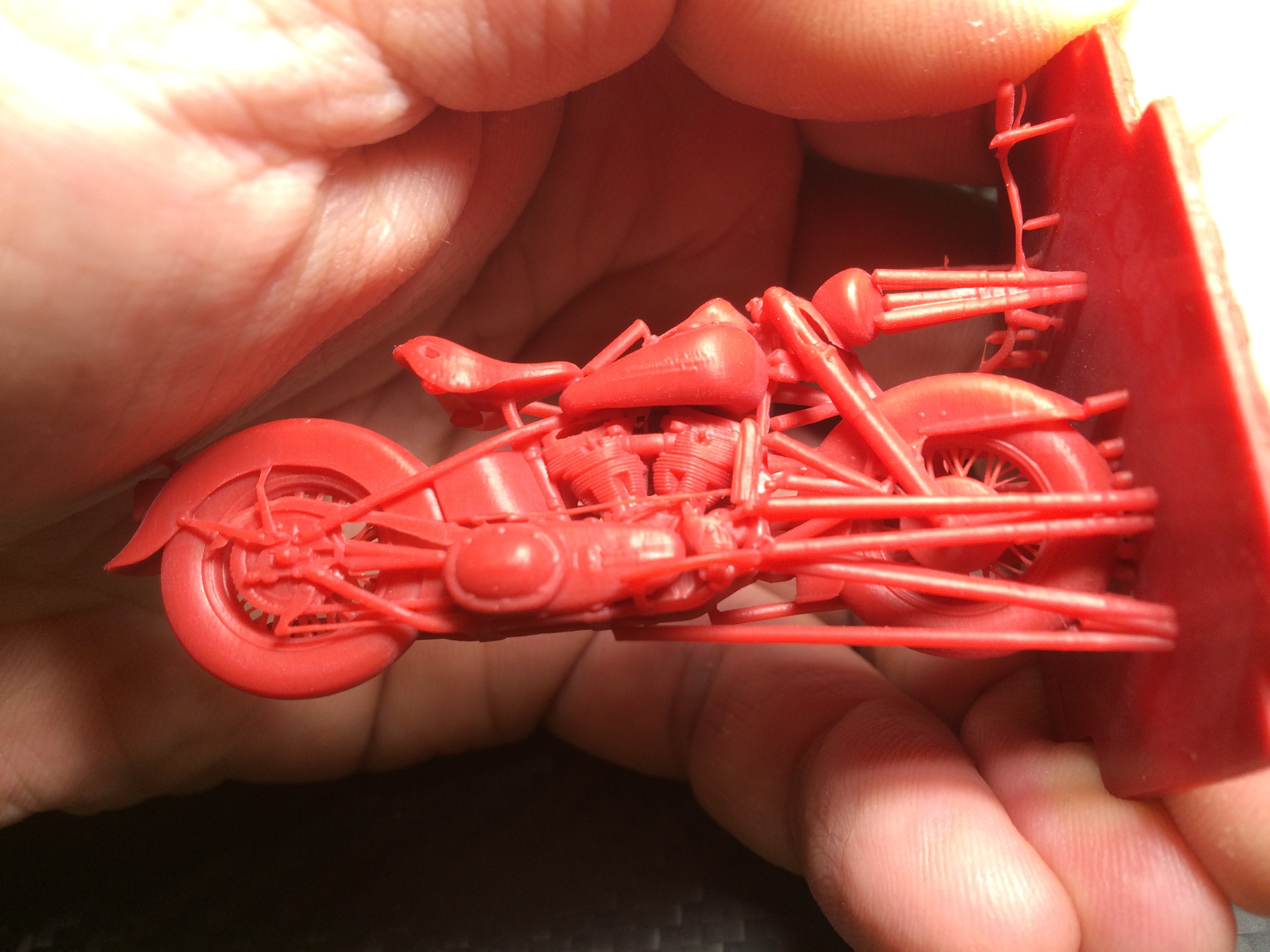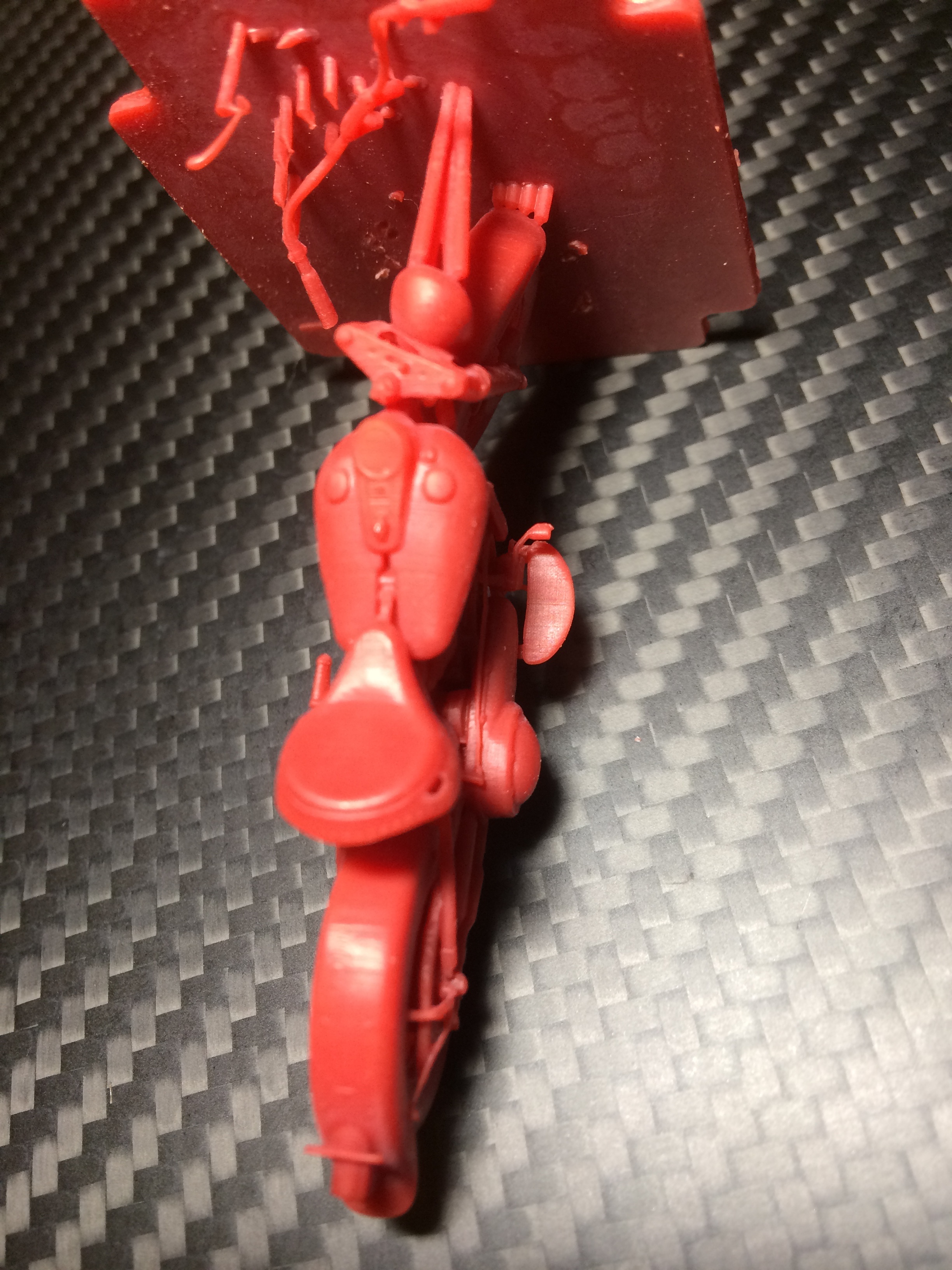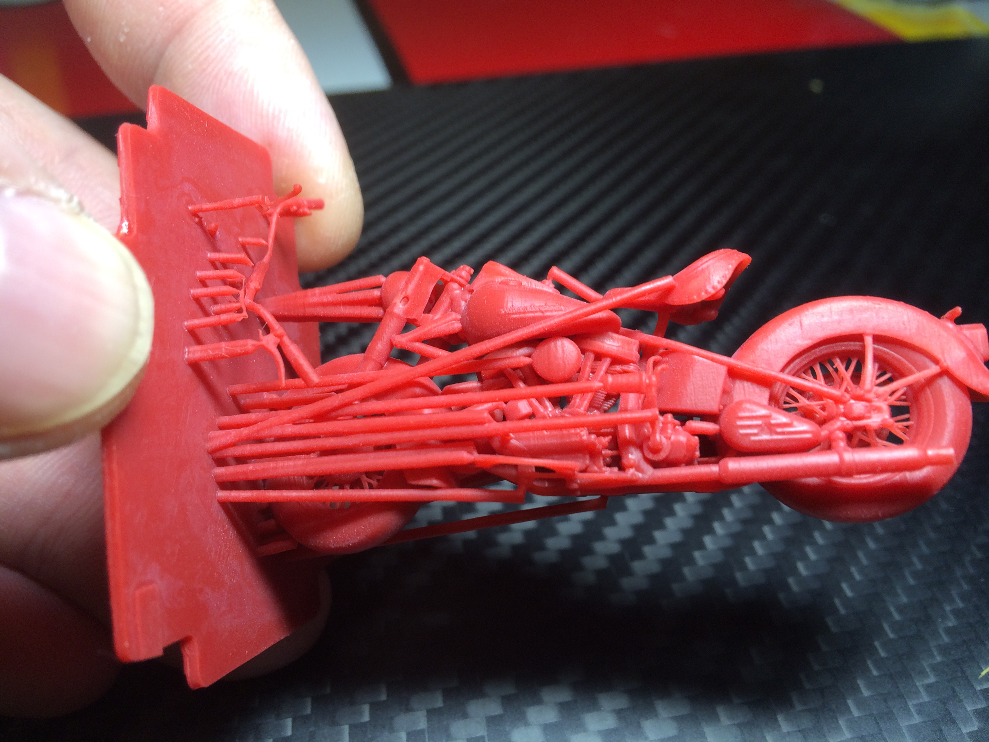 Руль худоват вышел, а зеркало смыл случайно когда отмывал модель, подозреваю что руль вышел не очень вследствии его тонкости , расположения его на платформе, не идеальной фокусировки проектора на плоскости построения и не очень совсместимости с 50ти микронным слоем.