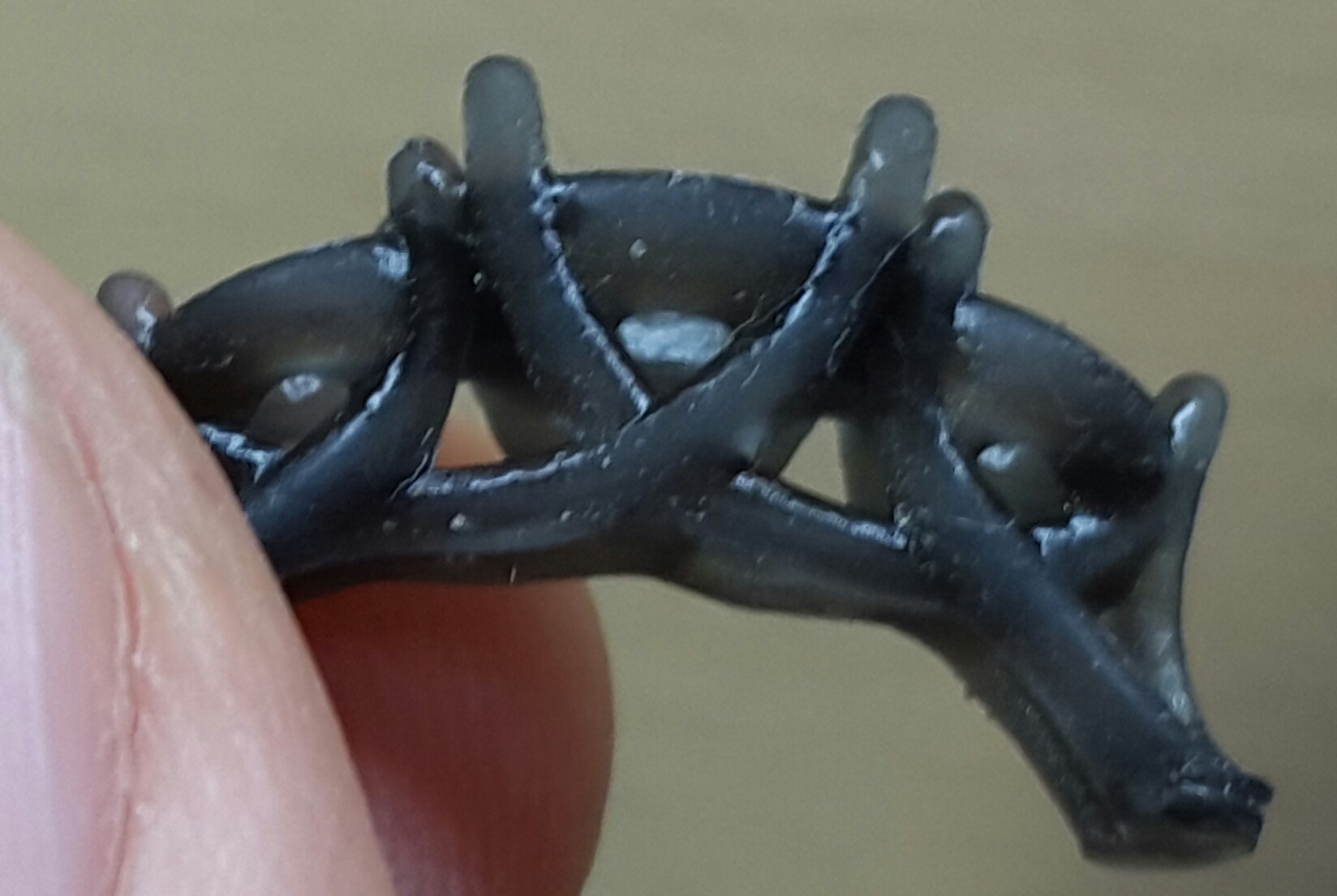 Напечатал два кольца. Первое слоем 0,05 и засвет 1 секунда. Доволен поверхностью, слоев не видно совсем, гладкая. Но идет засветка вглубь детали, там где не надо. Уменьшать время или увеличивать толщину слоя при том же времени?
