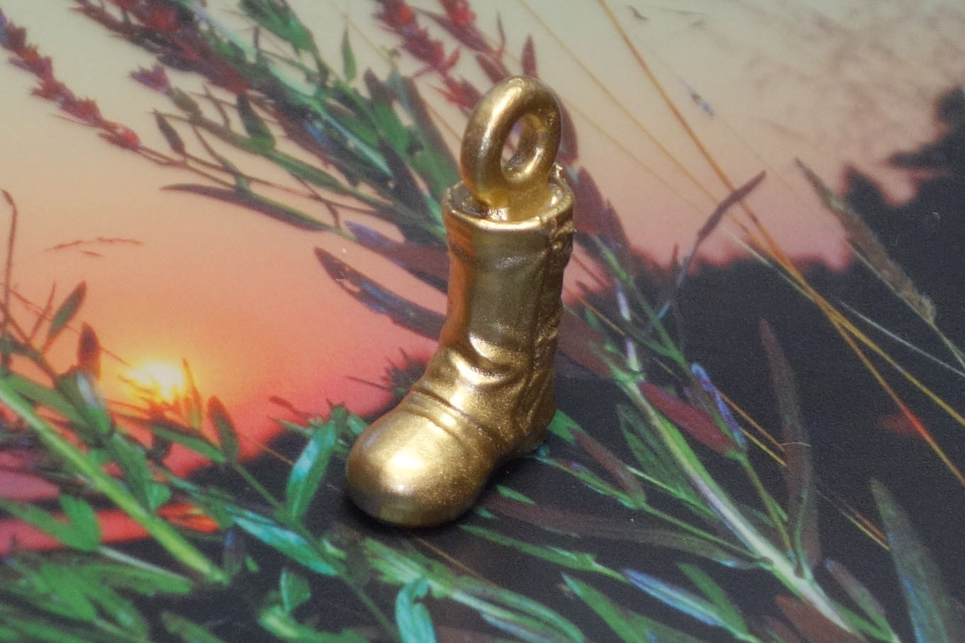 Ну чего ж... Химобработка, грунт, краска из баллончика, лак поверх (тоже из баллона) для порядка. Получилась вот такая штучка. Печатал 50-микронным слоем два с лишним часа, так что выглядит довольно прилично - остались косячки на кольце, за кое, как за Ахиллесову пяту, я держал поначалу при обработках оный ботинок, но вродь неплохо вышло, пусть и мелочевка :)