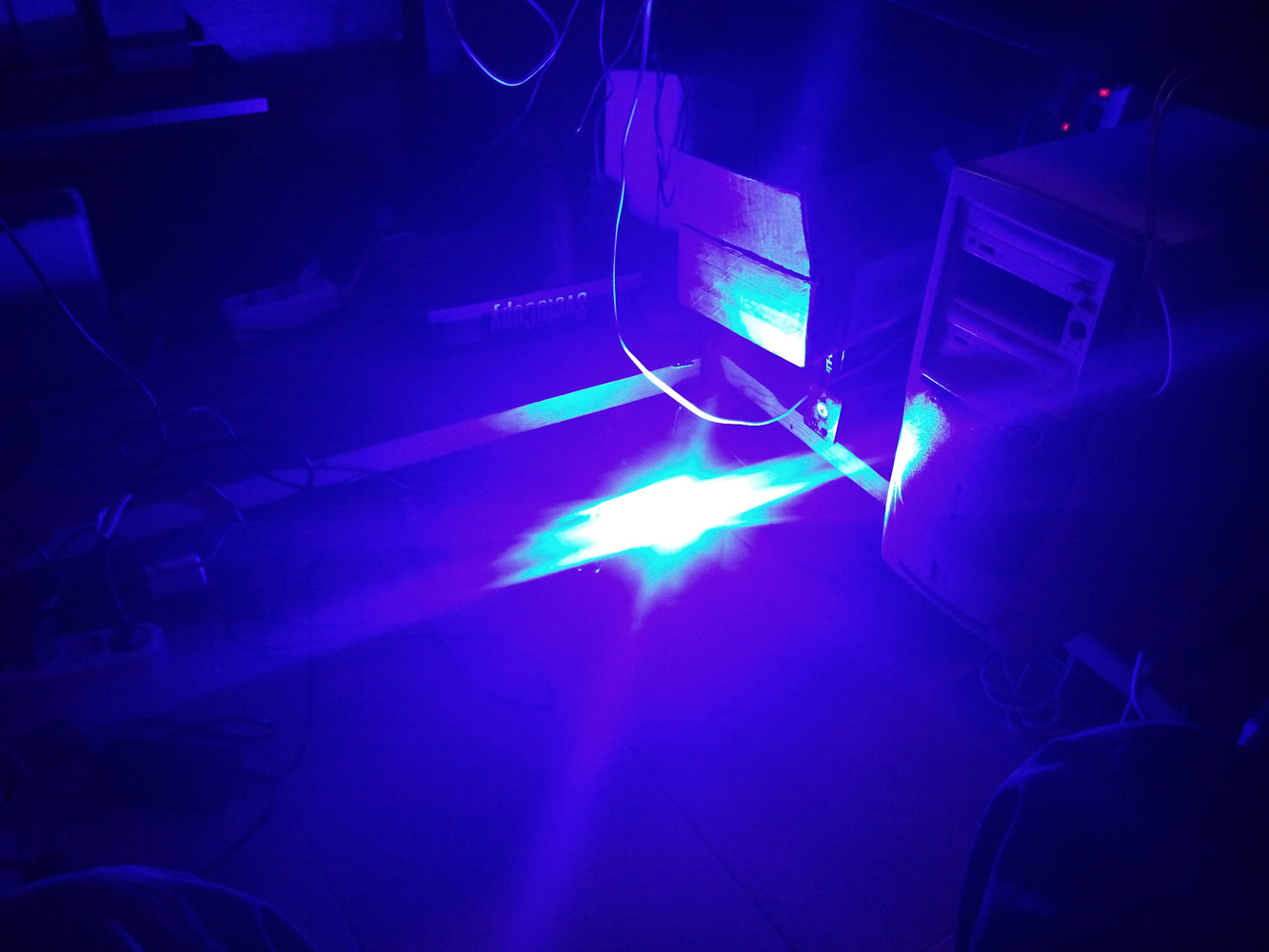 Не густо конечно, но что есть то есть. Отрыл в закромах фотополимера немного, взял лазерную указку 80 мВт 420нм (полосой которая светит), просветил через дисплей и полимеризация пошла. Заказал в китае светодиодов 3Вт, а пока вот пытаюсь собрать макетку.