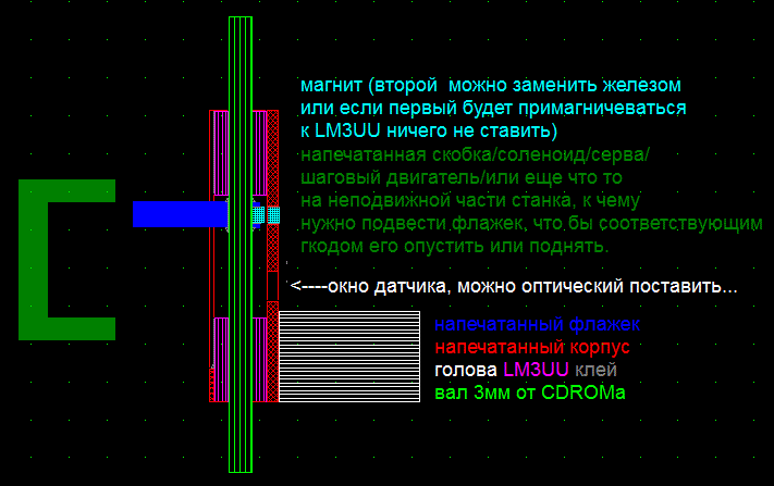 ... эл магнитом разве что держать, и то со временем железка намагнитится..3DPrinter писал(а):Может просто найти какe-то более аккуратную кнопку вместо эндстопа?