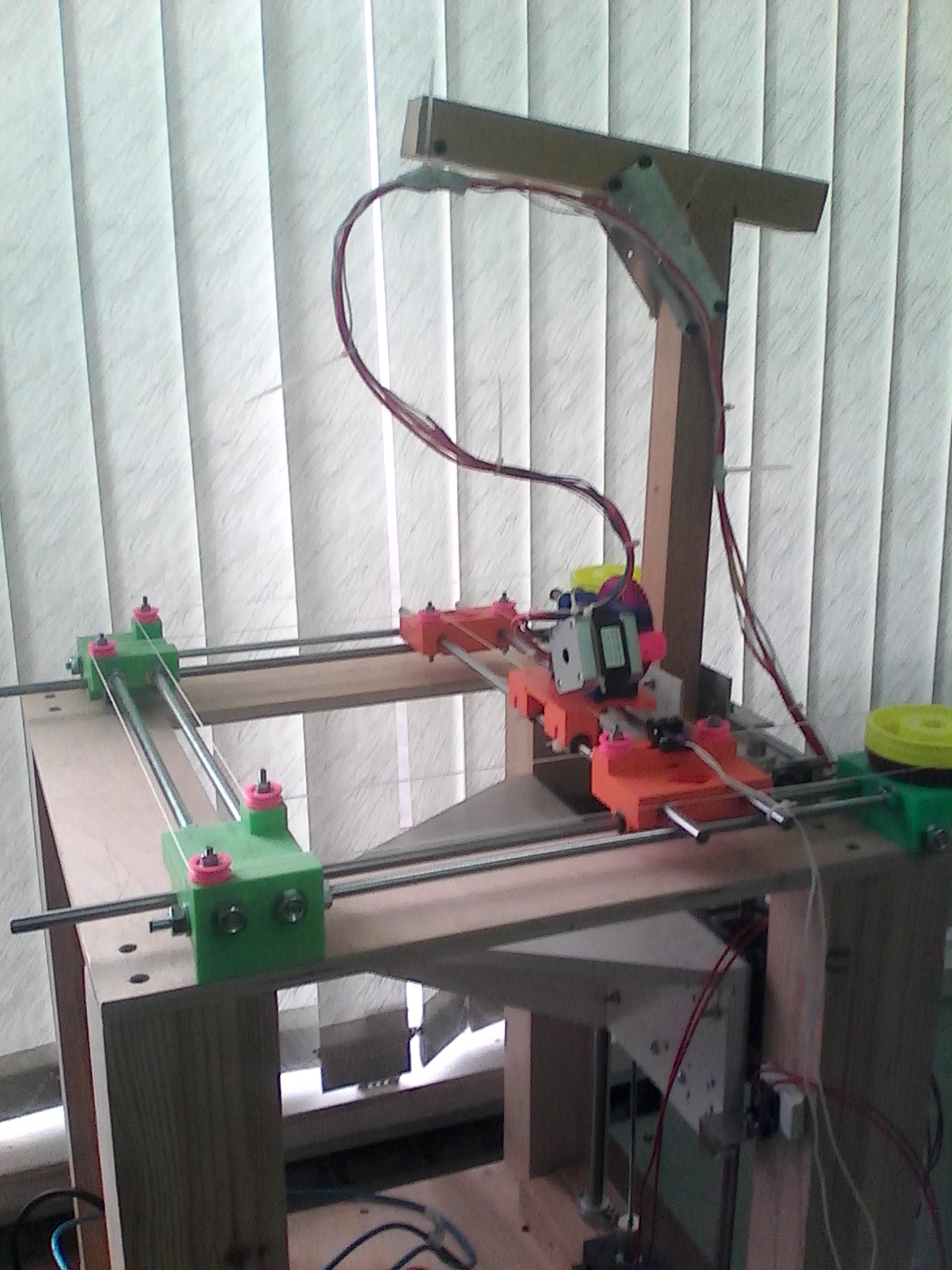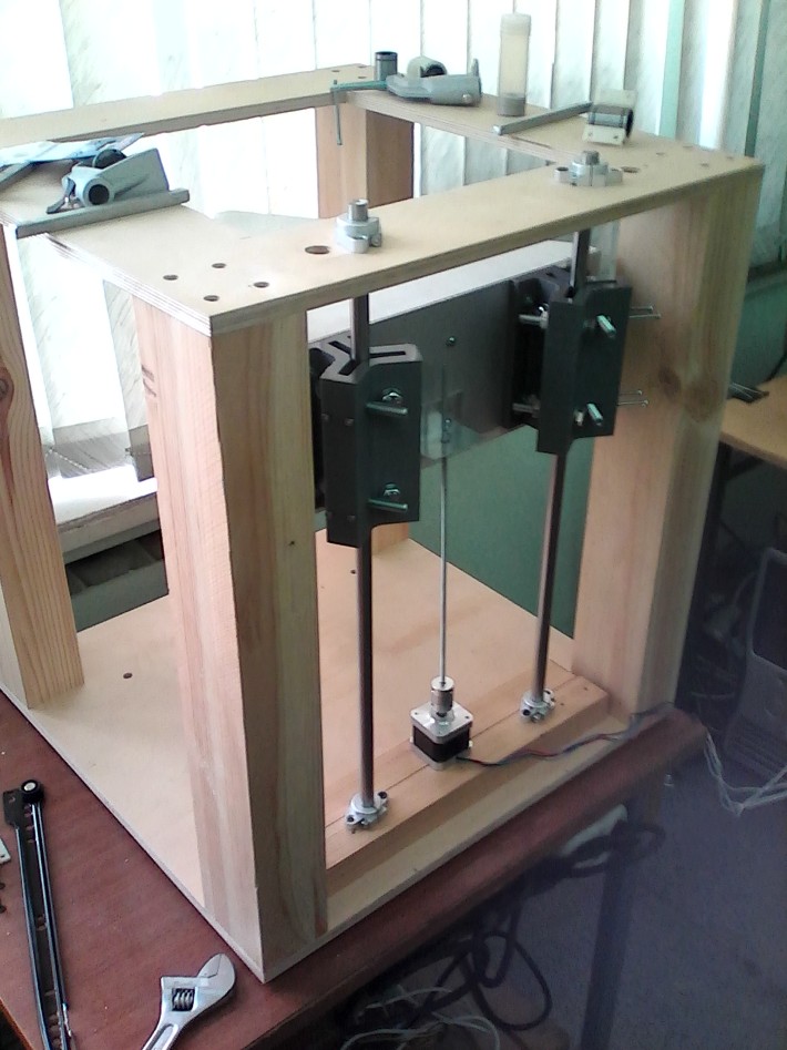 собираю себе тоже такой принтер, вторую неделю бьюс с осью Z не хочет плавно ездить, правда у мена стол самодельный получился тяжелый, около 3.5 кг но это вопрос второй, первый вариант делал аналогично , две направляющие и один ходовой винт, далее добавил на противоположной стороне от направляющей добавил еще один ходовой вин для поддержки консоли стола, (все равно стол движется не равномерно иногда закусывает),... сейчас переделываю в очередной раз не три направляющие и три ходовых винта, надеюсь что конструкция получиться жесткой и будет плавно и равномерно двигаться.