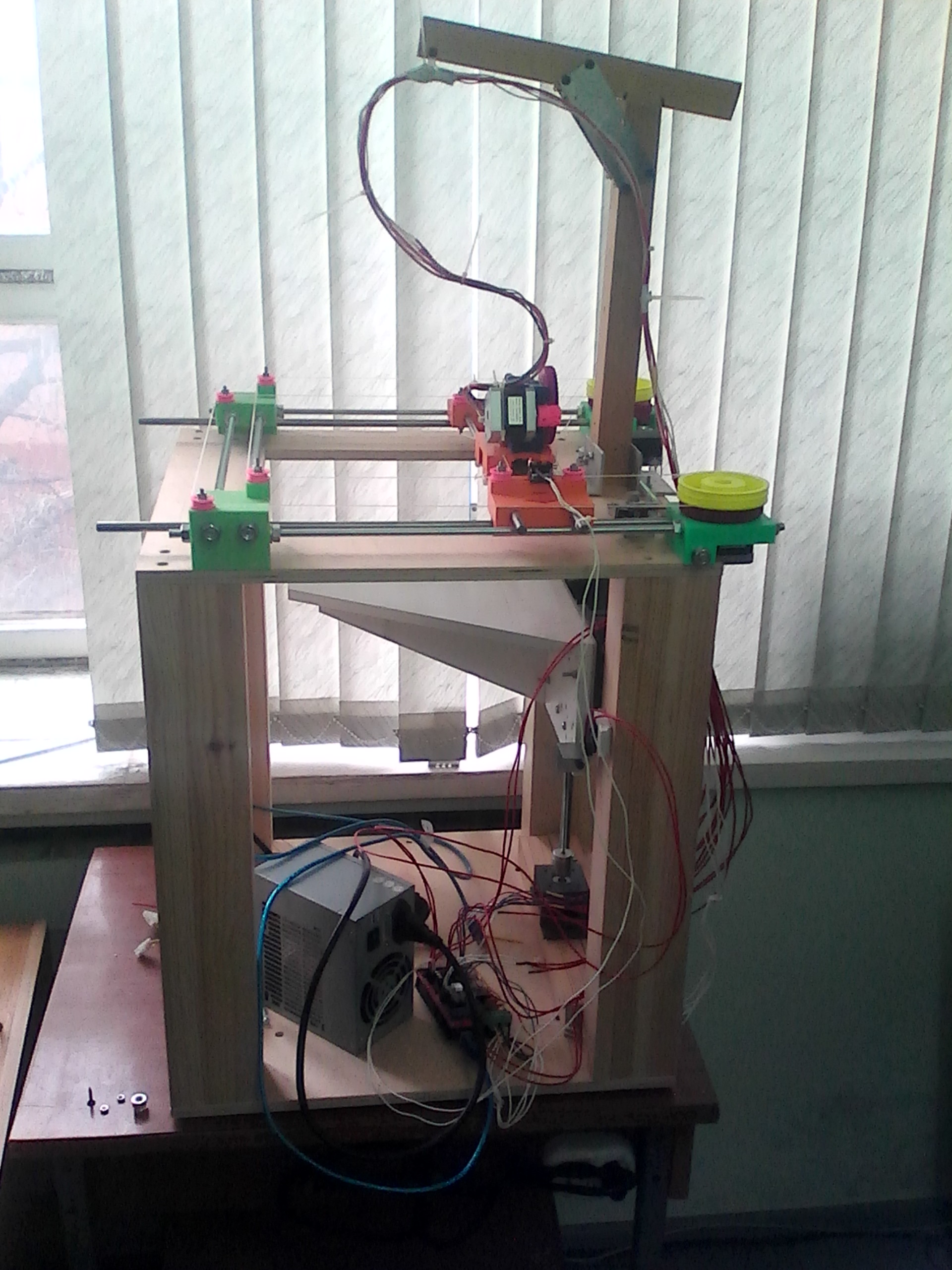 также изменил конструкцию осей Х и У , шаговики соединил с шкивами (приводными которые наматывают леску ) через зубчатые ремни, так получилось движения более равномерные и без люфта, если автор темы не будет возражать могу здесь выложить модели.