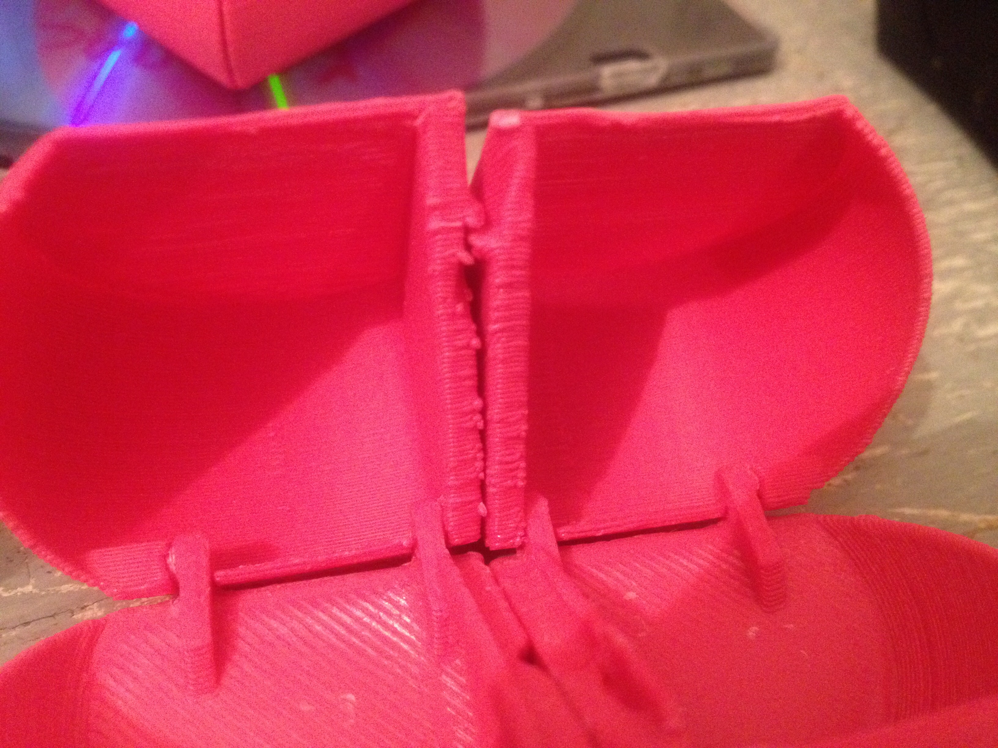 Крышка без поддержки печаталась, мосты в общем то получились (если бы сам не укосячил остановив кулер). А как из двух половин? В программе моделирования резать или в репетиерхосте (пока не научился)?