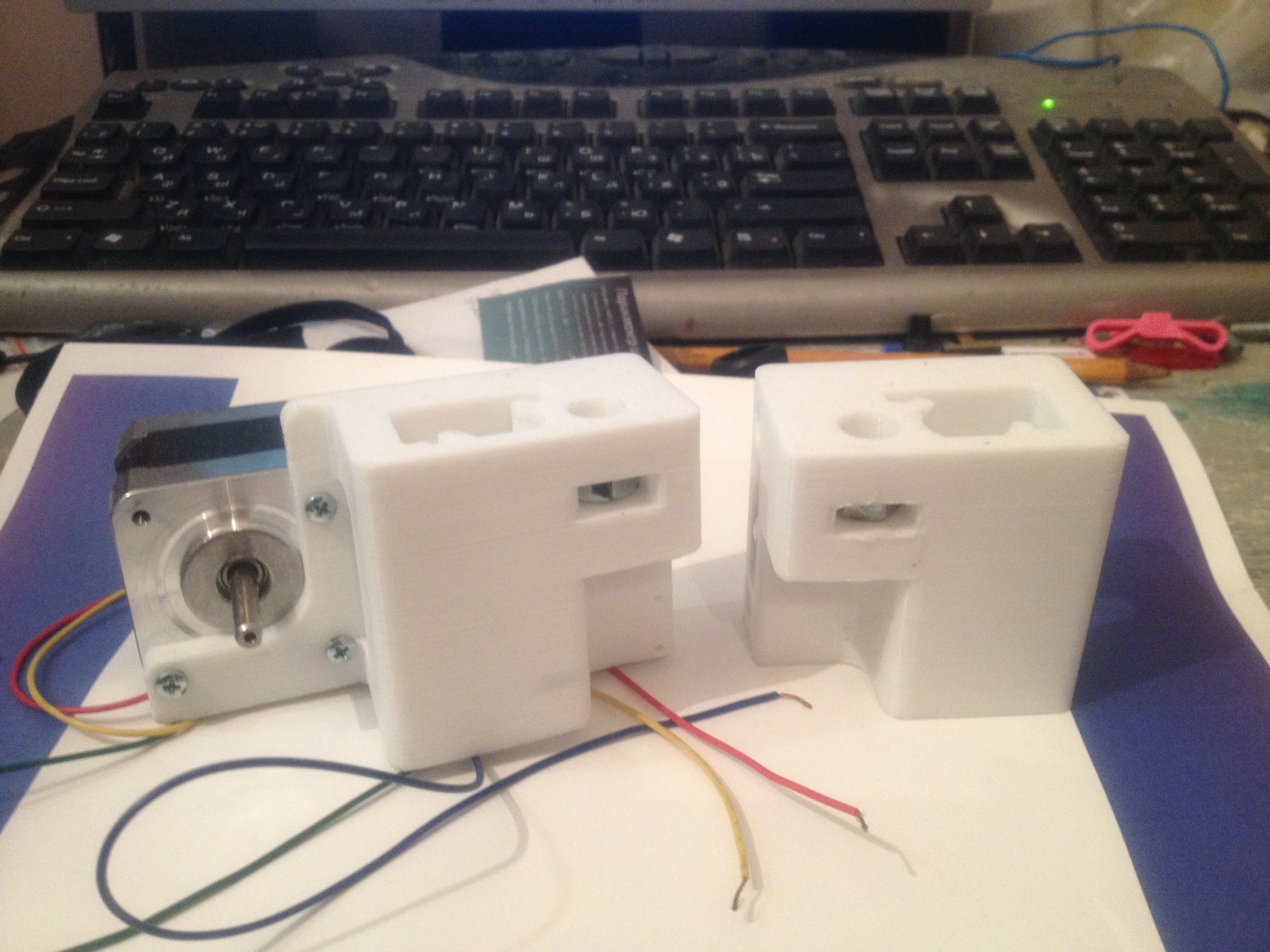 Дальше буду искать из чего сделать направляющие и корпус, и буду собирать второй принтер на рампсе и ардуино. Каретки уже тоже смоделил как копии своих же.