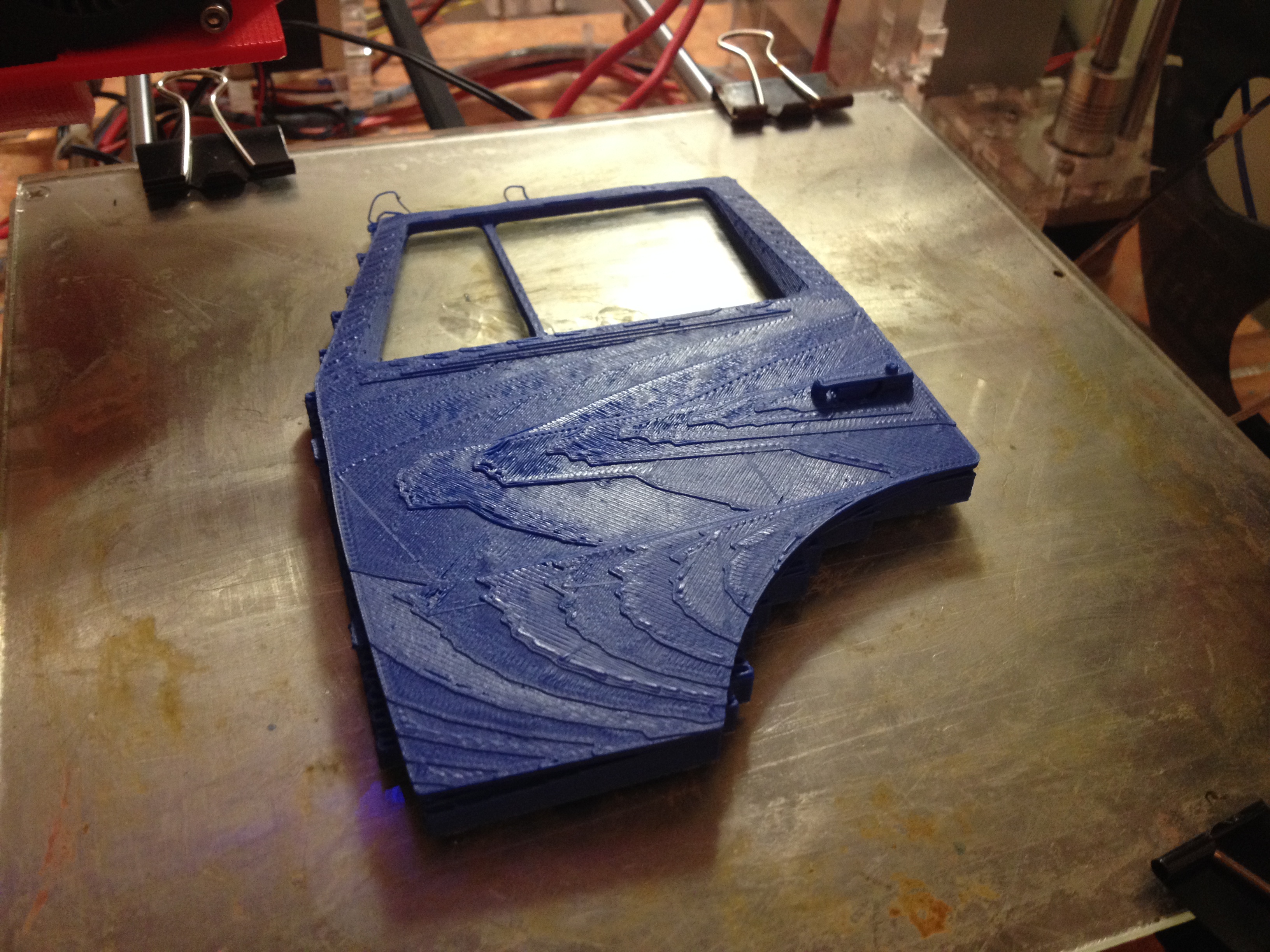 На внешней поверхности кое-где была недоэкструзия, но тут ничего не поделать.. пластик такой судя по всему. Главное во время печати дверь не повело и не отклеивалась. После снятия чуть ее "втянуло внутрь", заметно, но думаю не критично. Заполнение маловато всё же. "Дышит" прямо :)