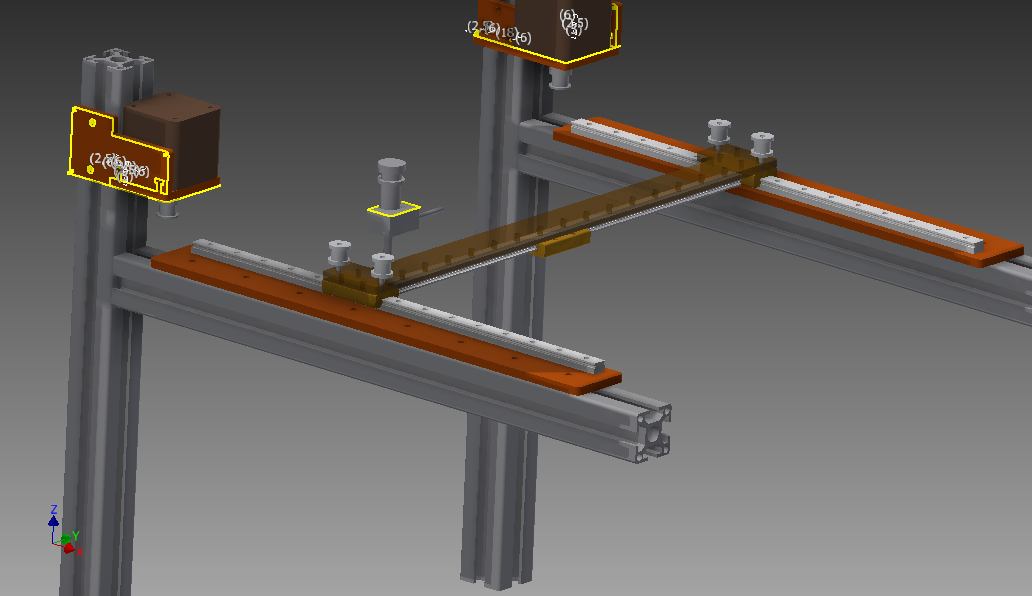 кстати у этой конструкции необходимо оба конца оси У двигать ремнями(не видно на фотках, двигается один конец или оба), иначе на больших скоростях, когда экструдер в максимуме по Y, будет болтанка.