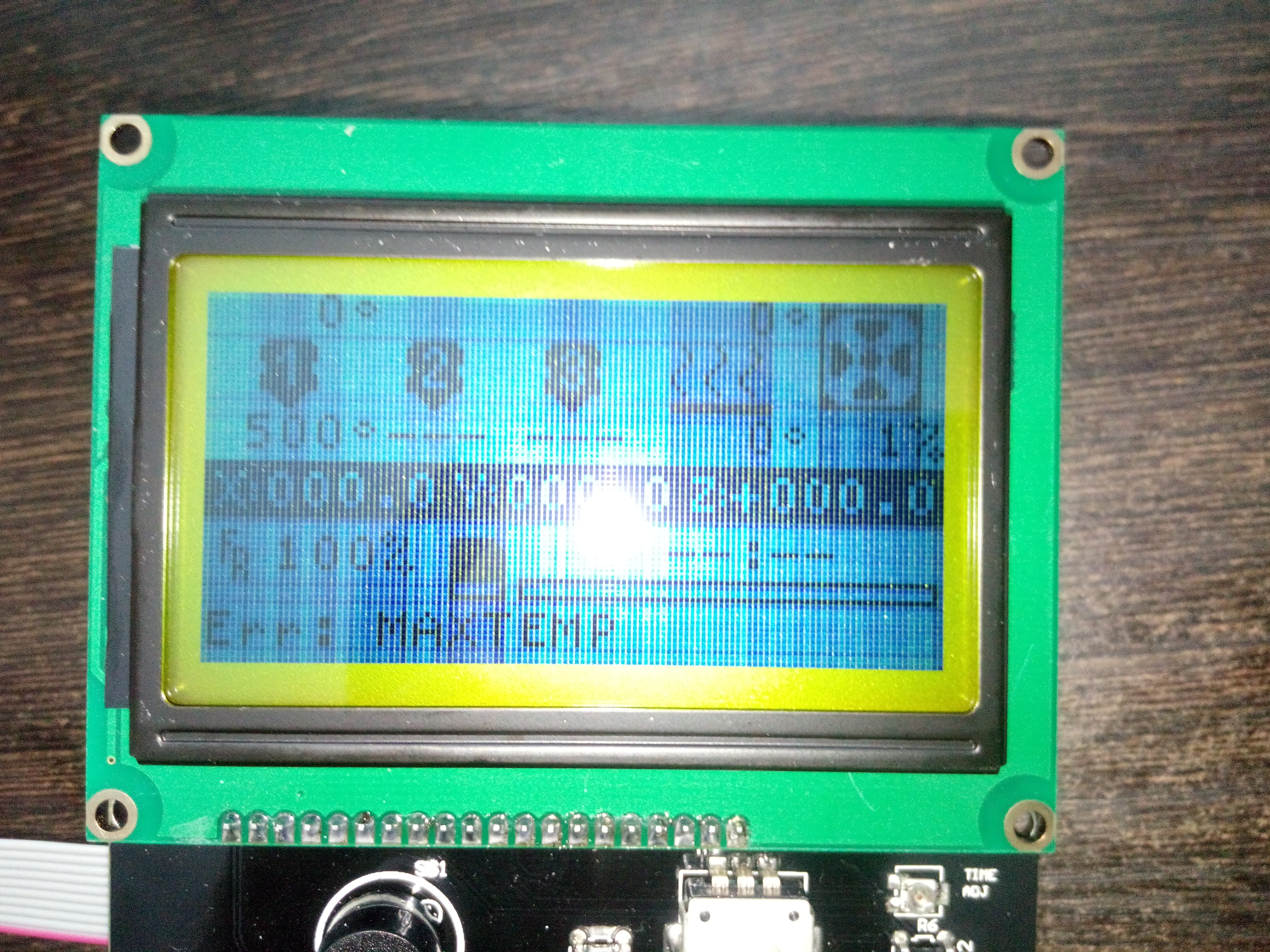 Однако есть одна большая проблема. Если подключать кабель usb на 5v, дисплей работает без нареканий. Стоит переключиться на 12v с блока питания, выдающего 21A, как текст становится, практически, нечитаемым.
