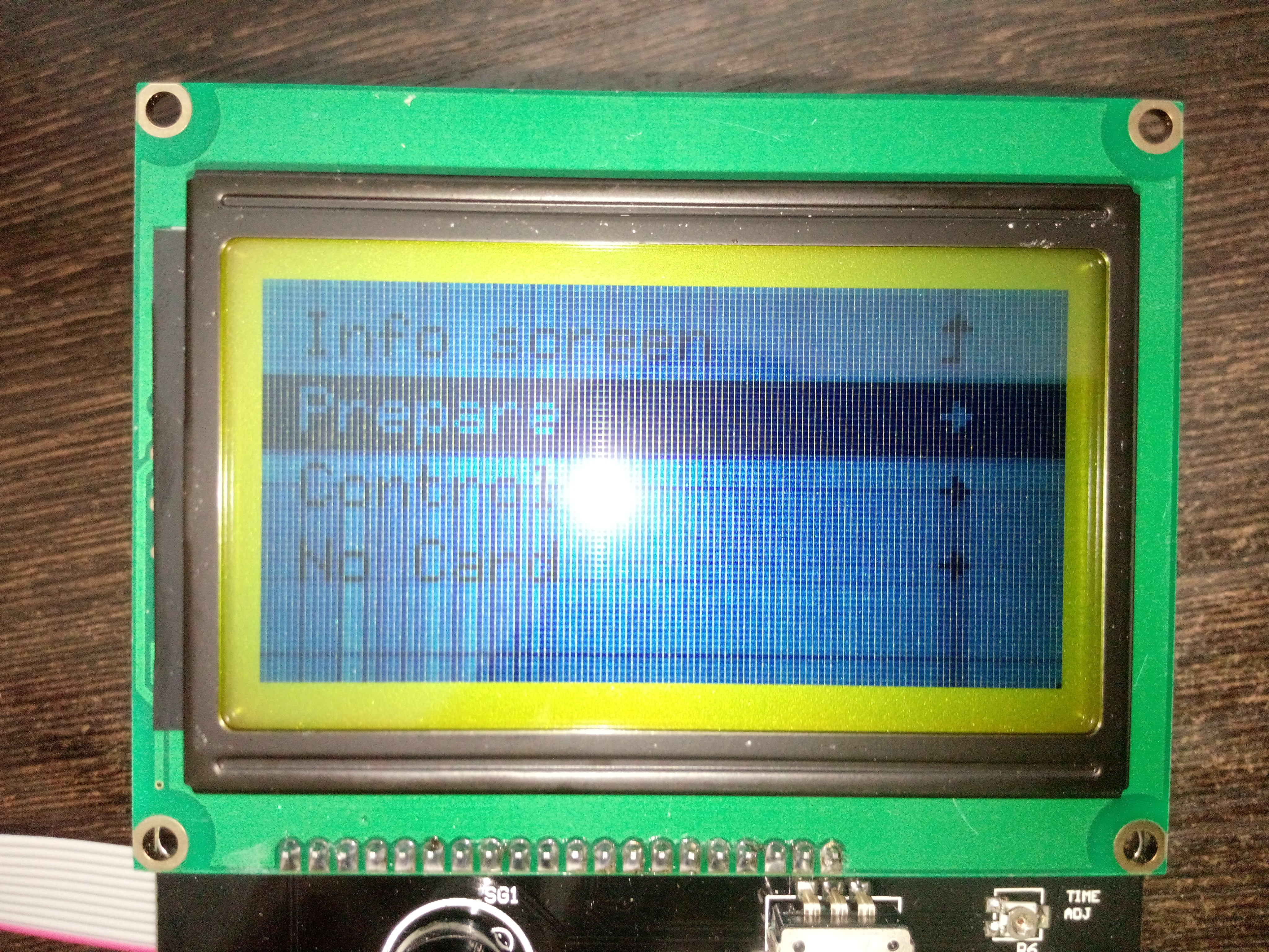 Однако есть одна большая проблема. Если подключать кабель usb на 5v, дисплей работает без нареканий. Стоит переключиться на 12v с блока питания, выдающего 21A, как текст становится, практически, нечитаемым.
