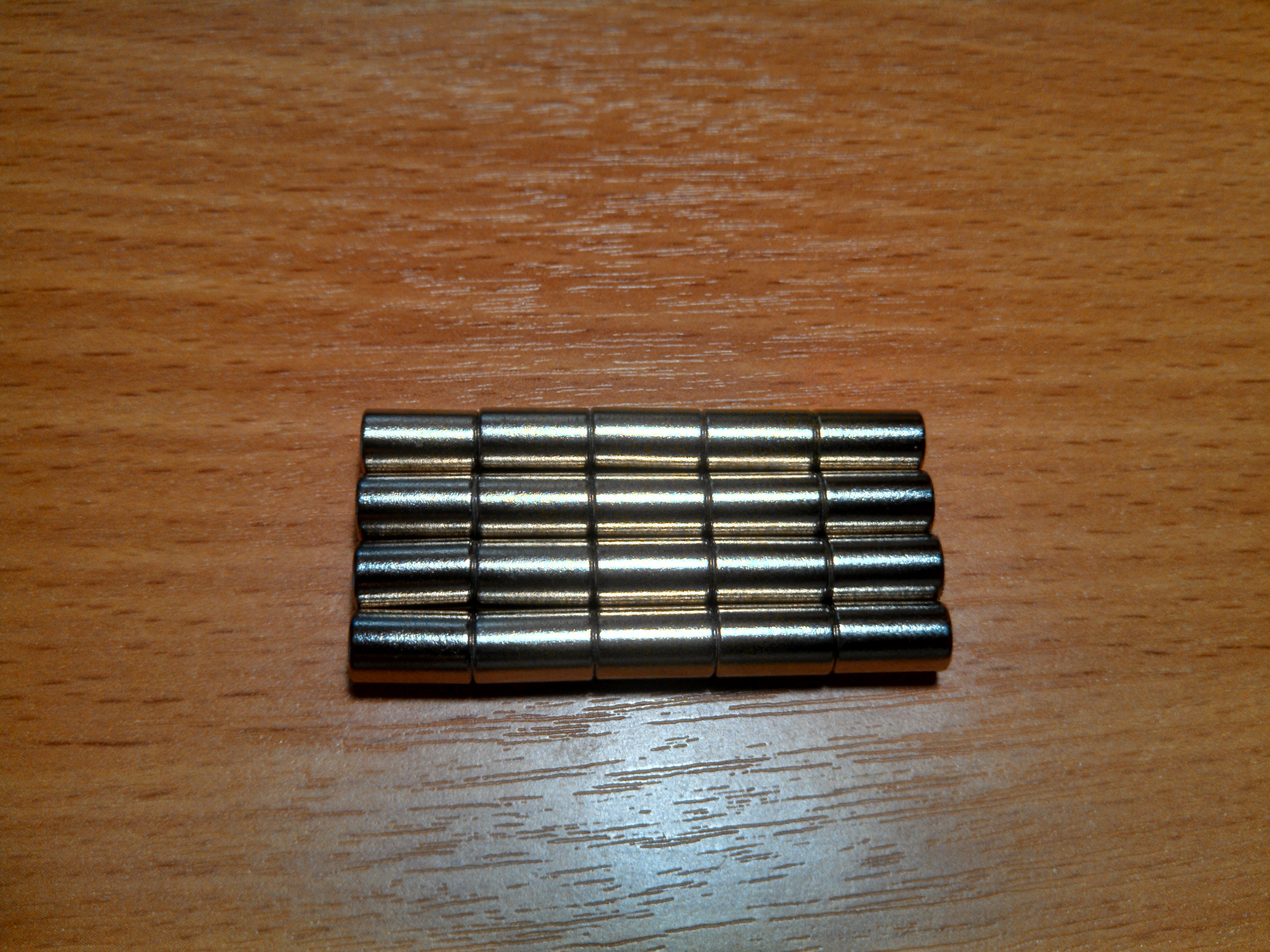 Неодимовые магниты в виде 10мм цилиндриков 20шт.