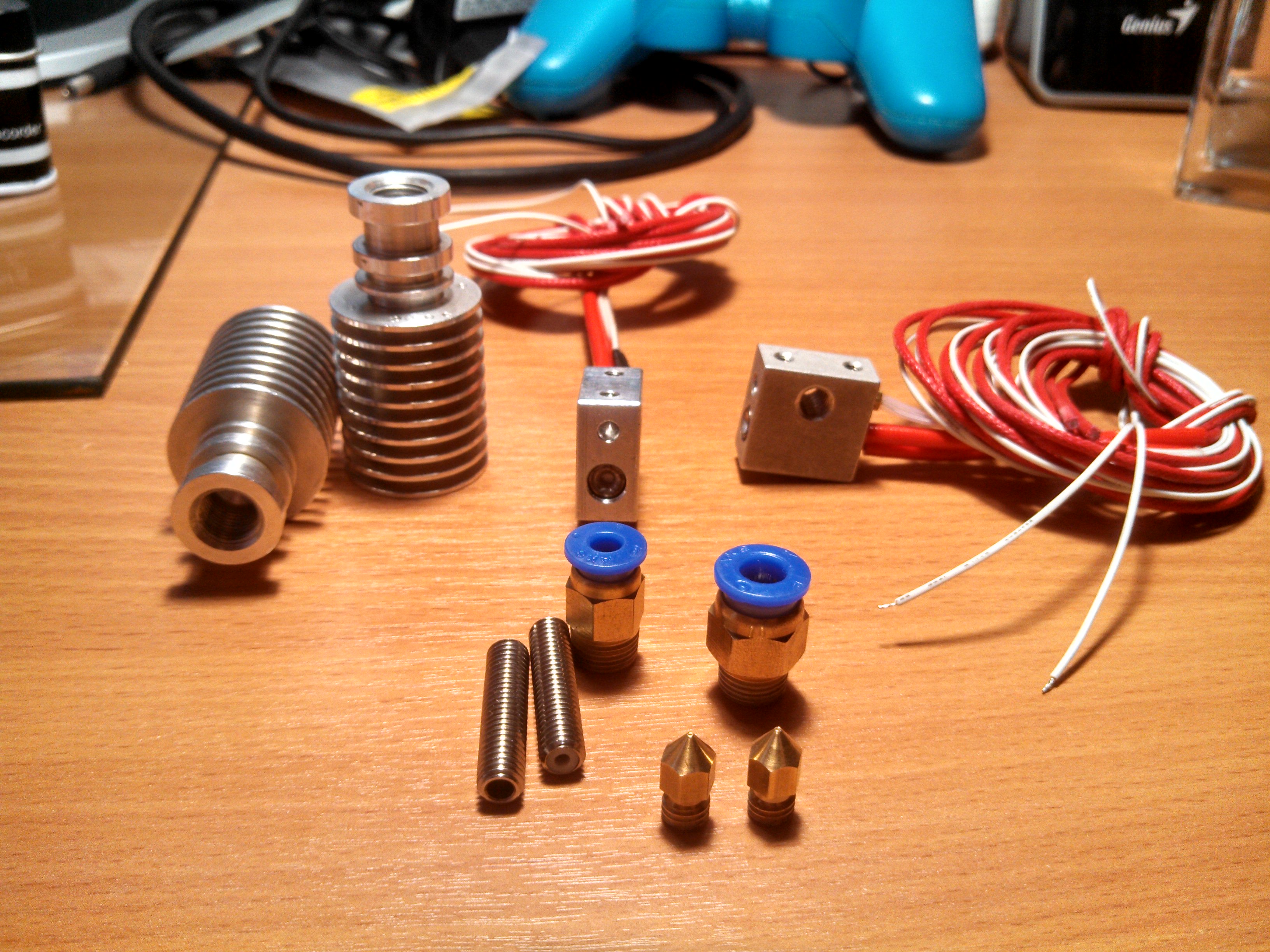 Экструдер китайская копия e3d не знаю точно хорошая или плохая, но почитав различные источники пришел к выводу что наверняка придется переделывать и покупать нормалный внутренний вал с термобарьером и без ptfe трубки внутри.