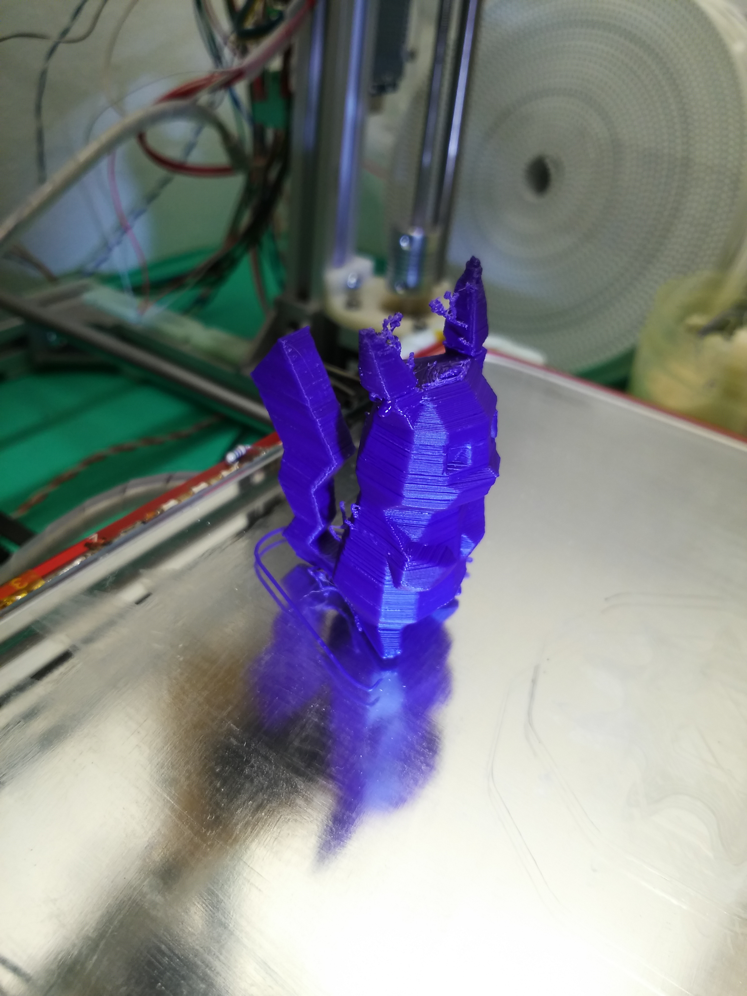Это опять я, провел еще эксперимент на этот раз красителем было содержимое паст для шариковых ручек фиолетового цвета, правда на фотках почему-то синий получился. Взял содержимое 4 паст растворил в 50 граммах ацетона, и поставил на подоконник, кошка бежала хвостом махнула, хотя нет у нее нет хвоста, наверно задом махнула и пластиковая баночка упала на ленолеум и пару капель просочилось, теперь я это пятно ничем отмыть не могу. Потом взял этот краситель разбодяжил водой 1/1 и засыпал пластиком, подержал потом сутки часто перемешивая и вылил в поддон на сушку, неделю оно сохло потом я еще немного просушил на воздуходуйке и закинул в экструдер, результат уже неплохой, правда нить лезла не гладкая, но это наверно результаты предыдущих экспериментов еще не вылезли, при печати лезла очень красивая и ровная ниточка правда из-за того что намотчик нет, то слегка гуляет диаметр, но Пикачу я распечатал неплохо.