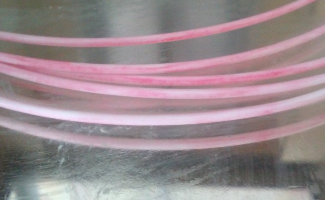 Порядок следующий: допустим берем краситель с шариковых ручек растворяем ацетоном, очень хорошо перемешиваем, потом добавляем воды ( чем больше воды тем дольше окрашивается, но тем меньше вероятности что пруток склеется) засовываем в эту бодягу пруток или гранулы и ждём переодически помешивая, если будет много воды то может долго окрашивается, вплоть до нескольких дней, и поверхность станет немного мягкая, когда поверхность окраситься достаем наш пластик и сушим. Этот форум достаточно короткий, можно и заново прочитать, я там вроде подробно рассказывал