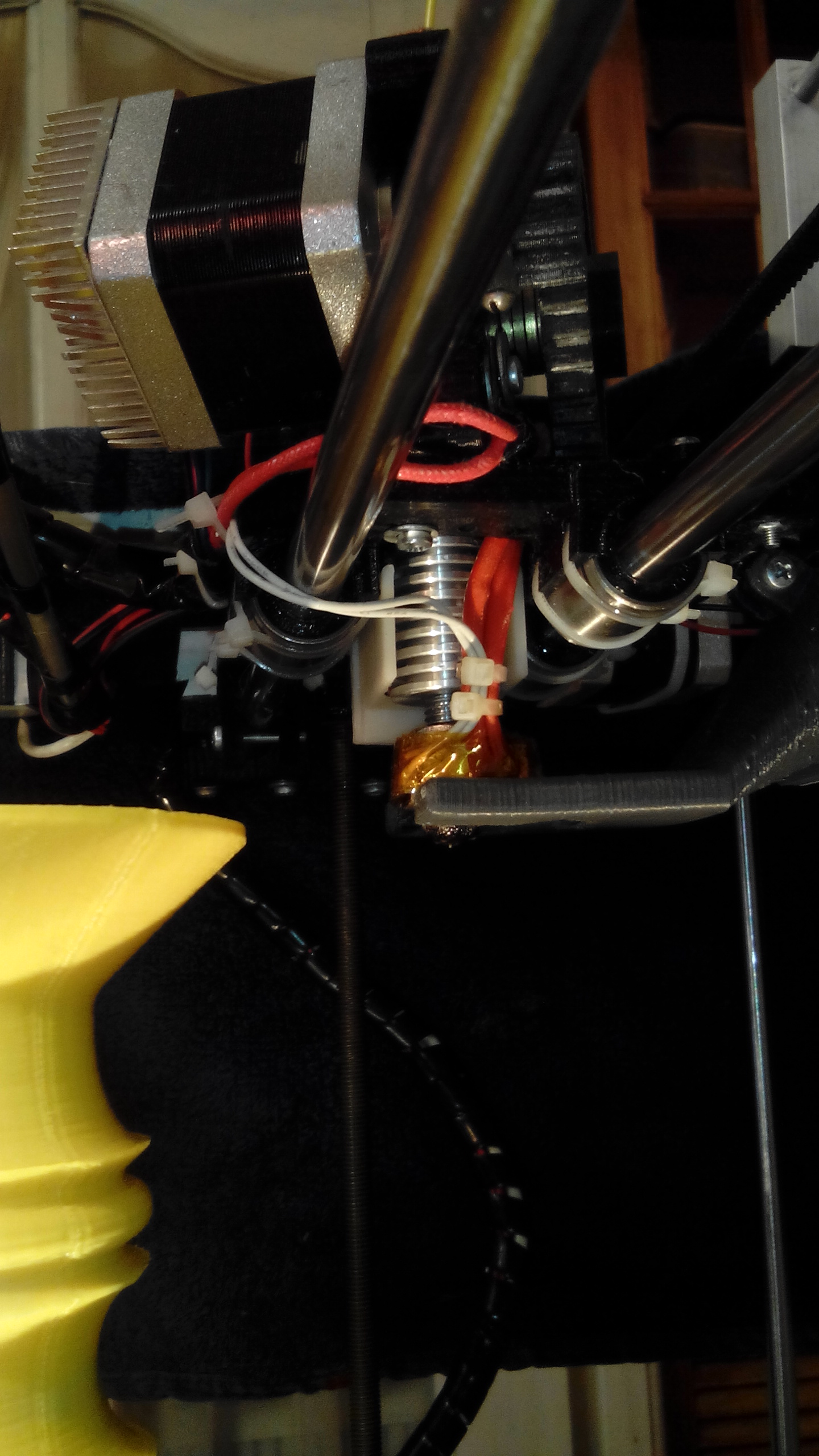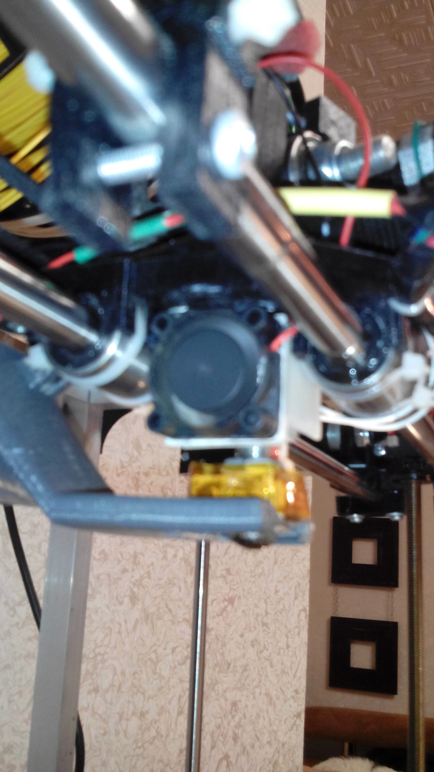 Значит резьбовая трубка вкручена в нагревательный блок на половину высоты блока. фторопласт отсекает тепло от прутка и собственно зона расплава только в сопле. И запас расплавленного пластика тоже только там. По уму фторопластовая трубка должна начинаться выше нагревательного блока, тогда он будет работать эффективно.