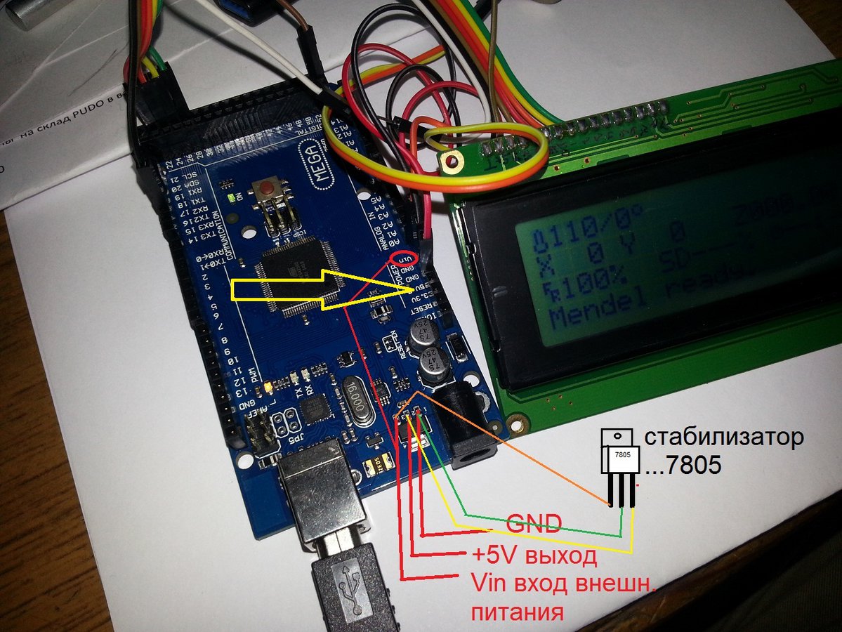 3) Если БП 3D-принтера выключен, то можно без опаски подключать принтер к ПК, причём на LCD-экране всё отображается корректно.