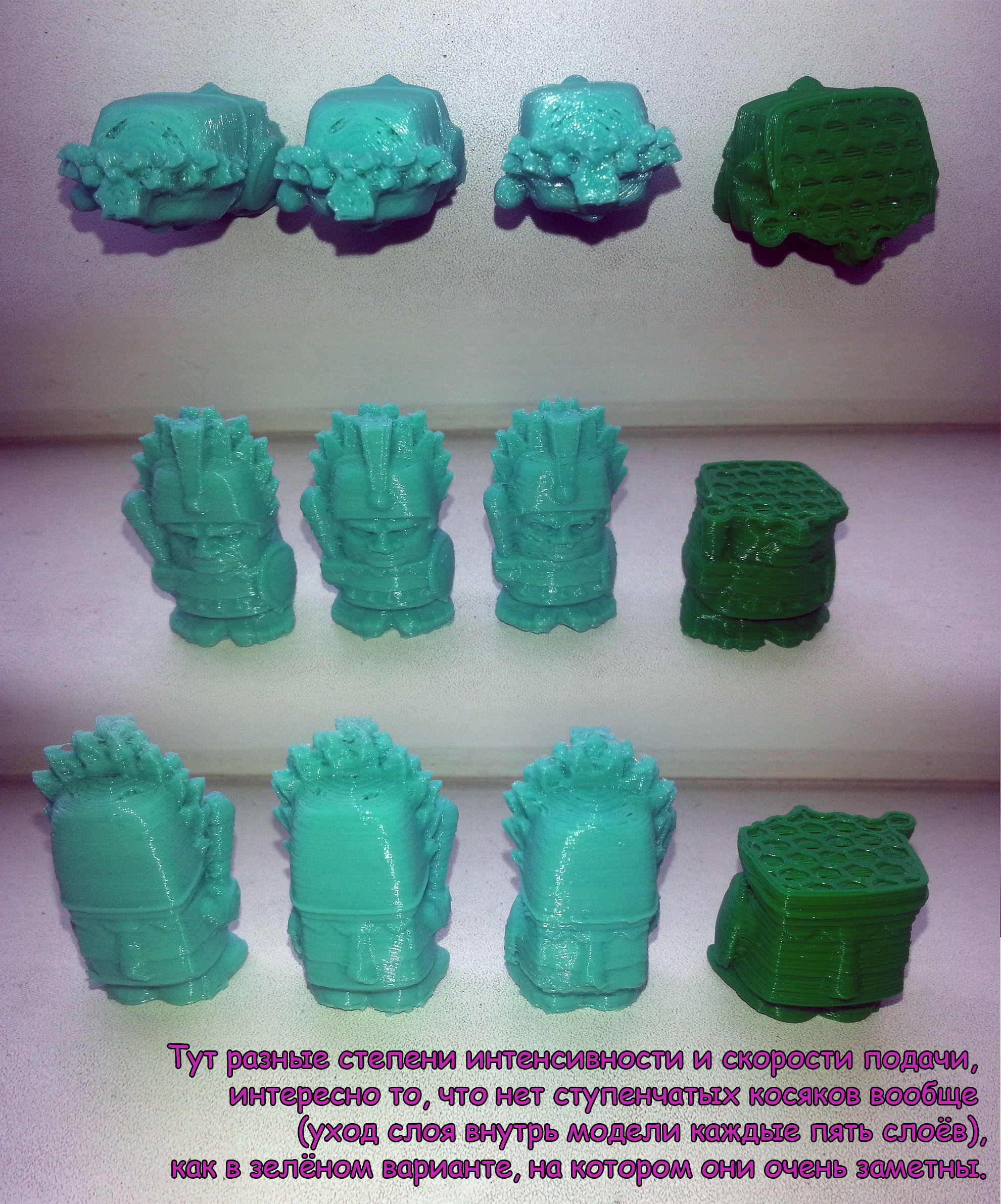 2. на моей первой напечатанной модели видно много "пупырышков", с уменьшением скорости печати их количество заметно сокращается, но они всё равно не пропадают, от чего это?