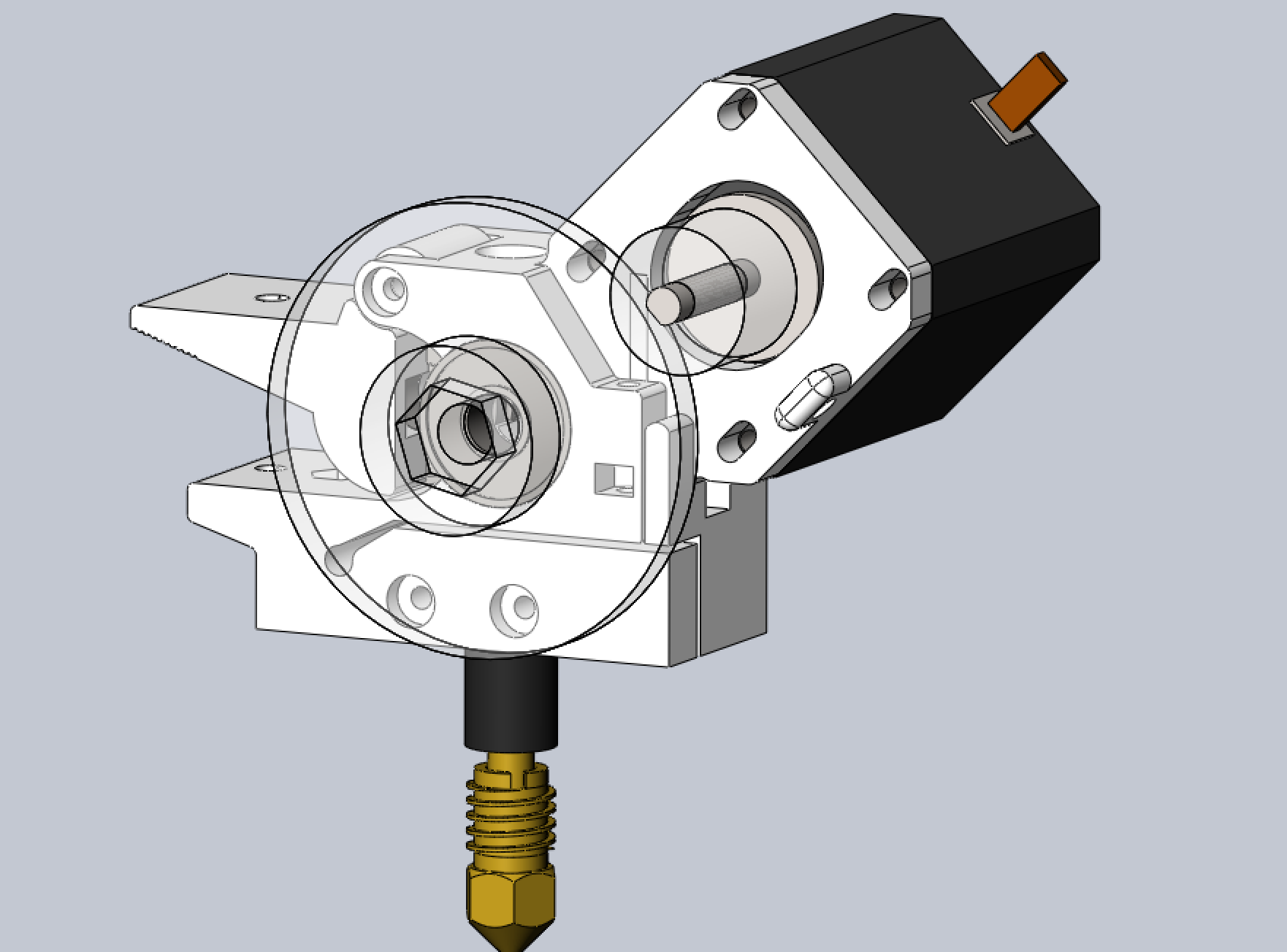 близко подходящая к болту подачи горловина канала прутка позволяет печатать гибкими материалами типа FLEX