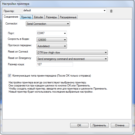 Прошивка марлин с минимальными изменениями(только выбрал плату и выставил банд 128000)
