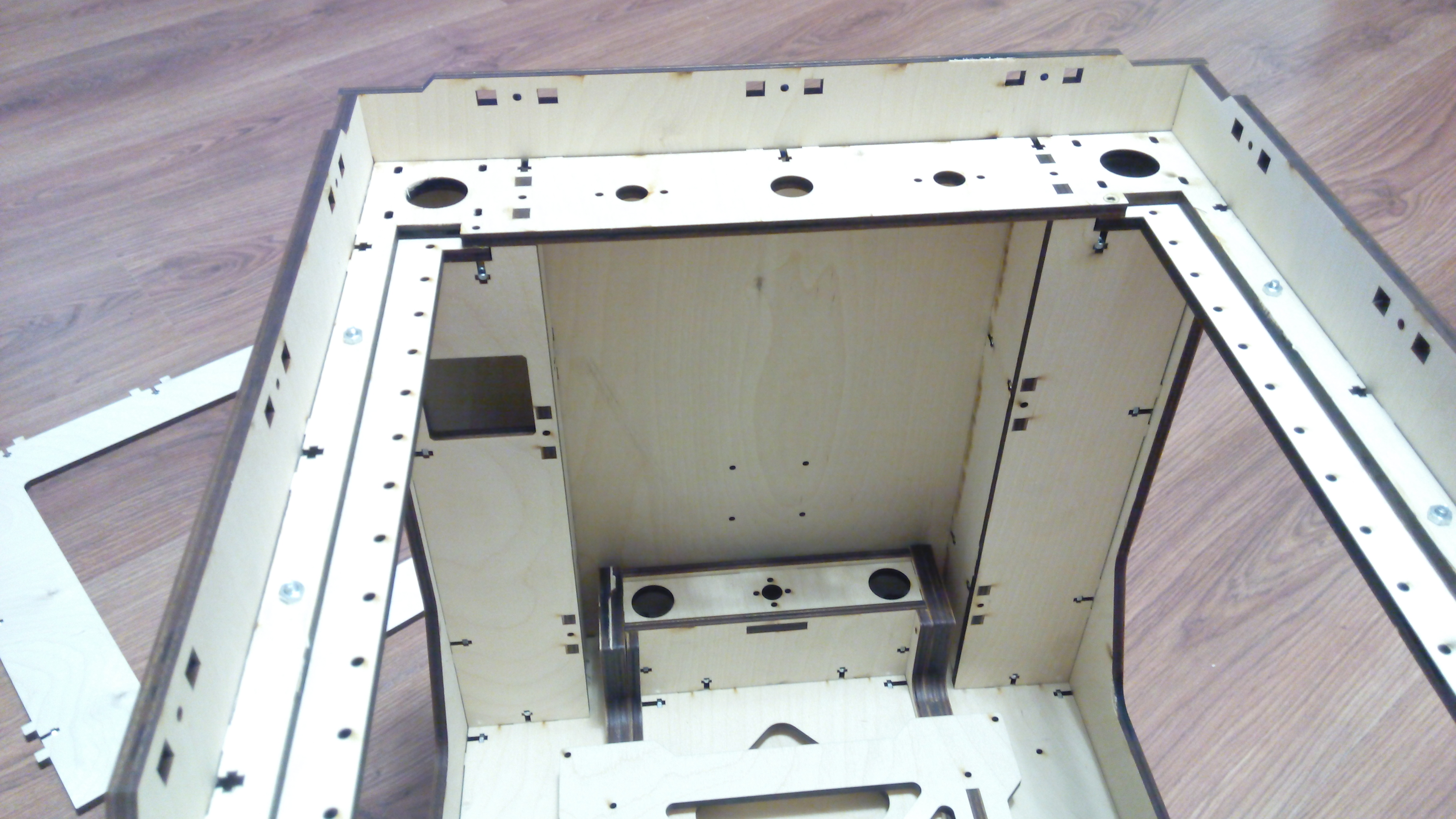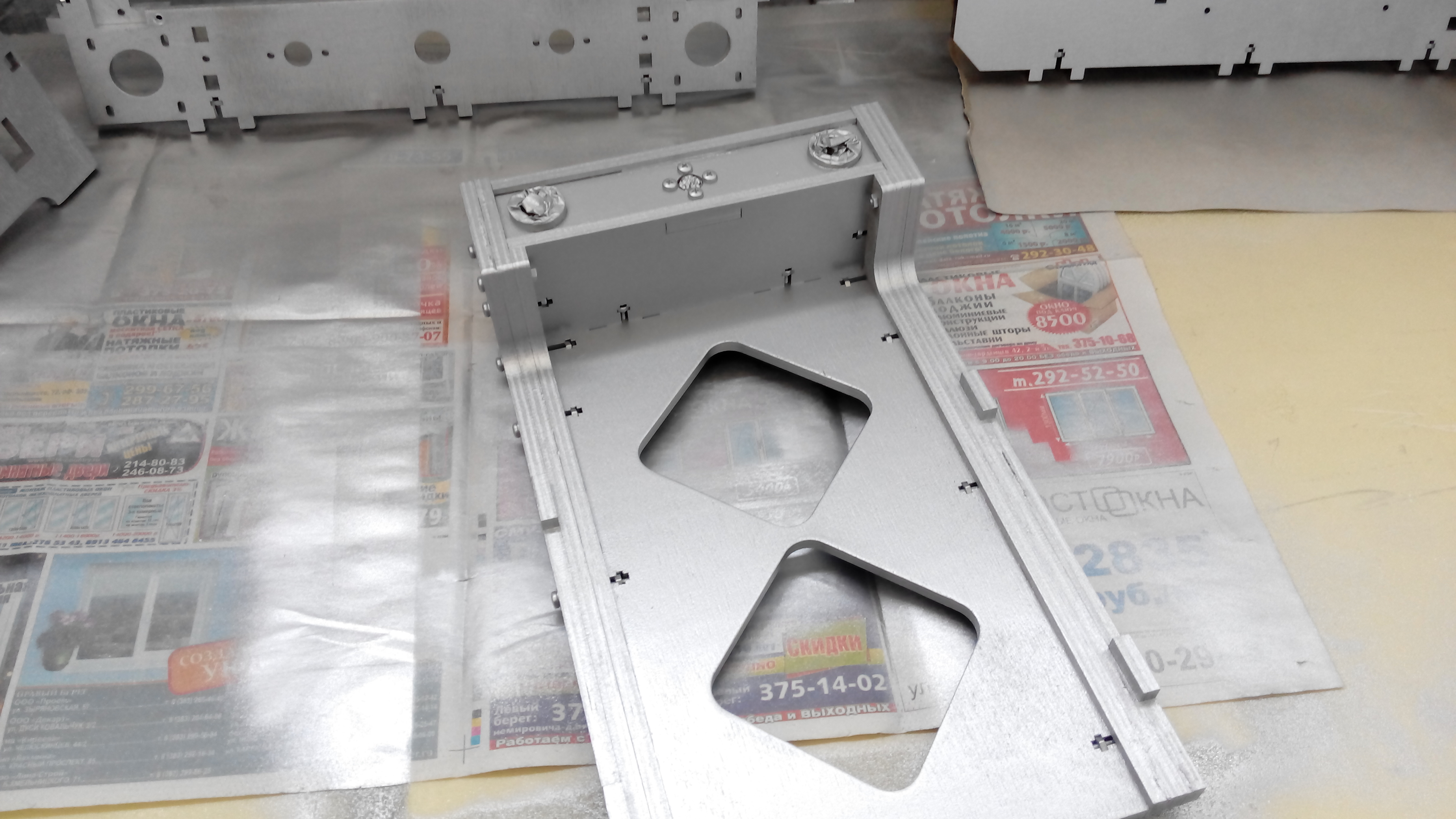 Примерно за неделю я его нарисовал. Нарезали фанеру быстро, буквально утром отправил а после обеда уже предварительная сборка, проверка всех соединений.