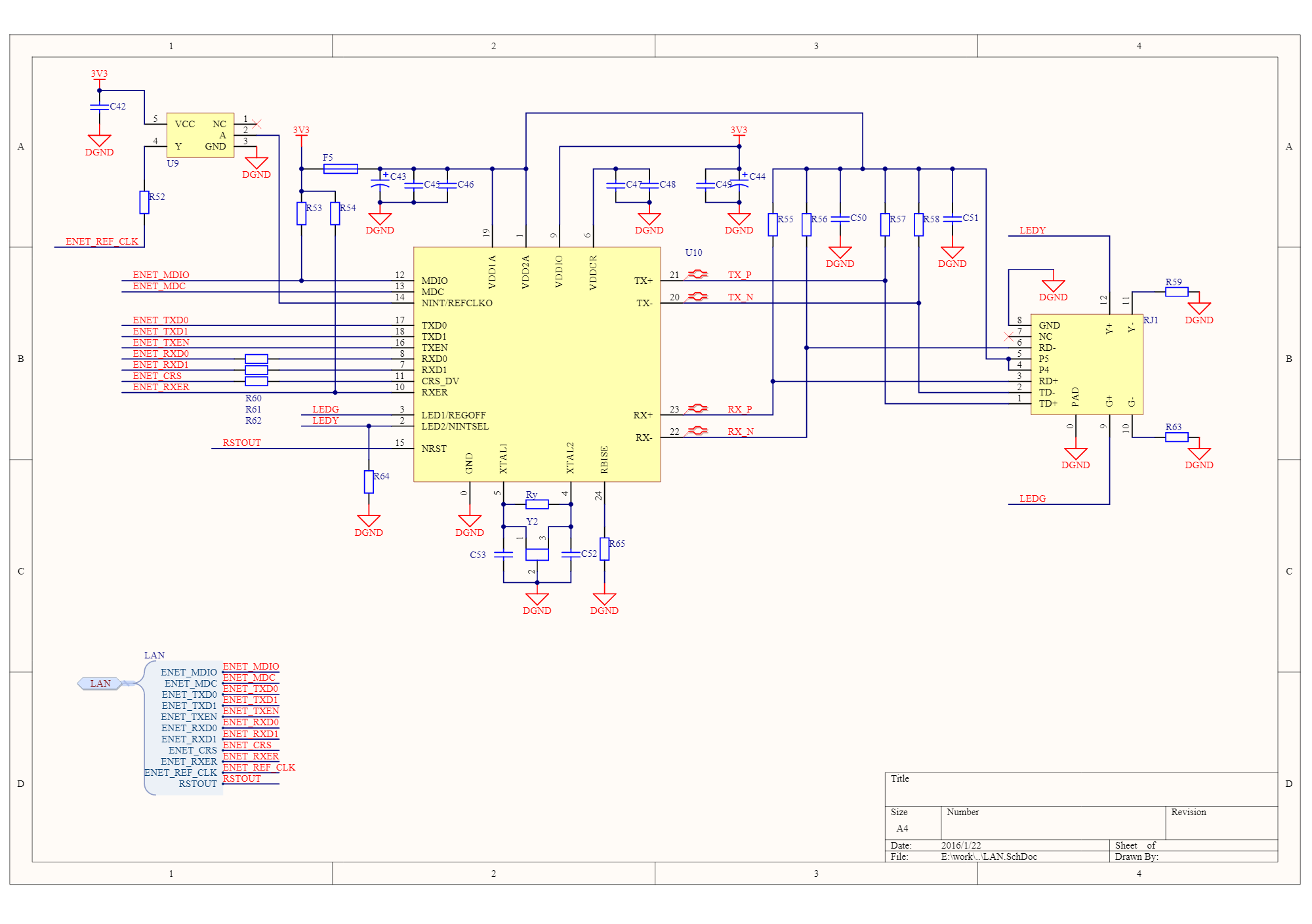 Если на nINTSEL = 1 (светодиод с права должен гореть),то nINT/REFCLKO становится входом и на него должен приходит тактовый сигнал синхронизации для передачи данных по сети.