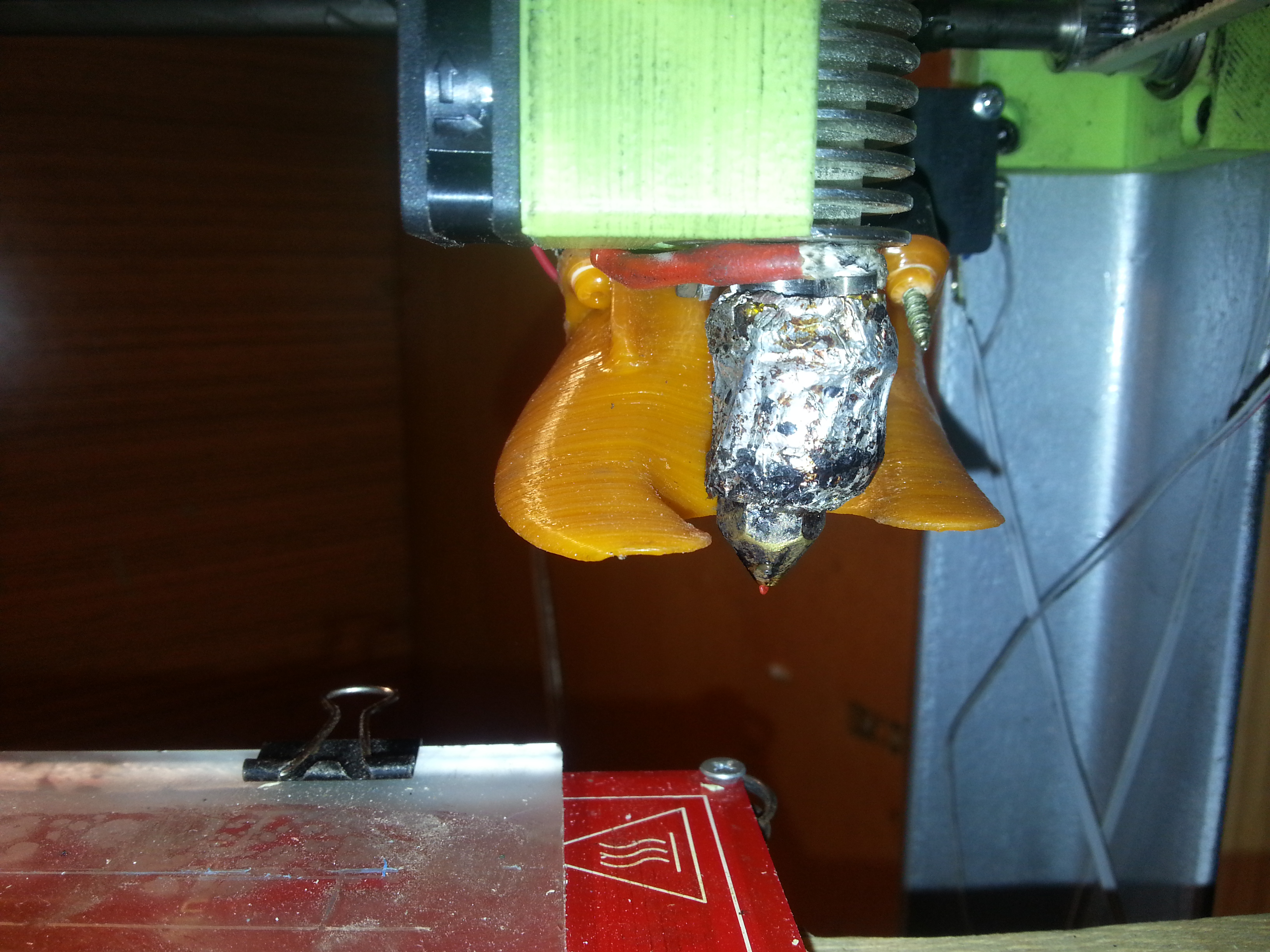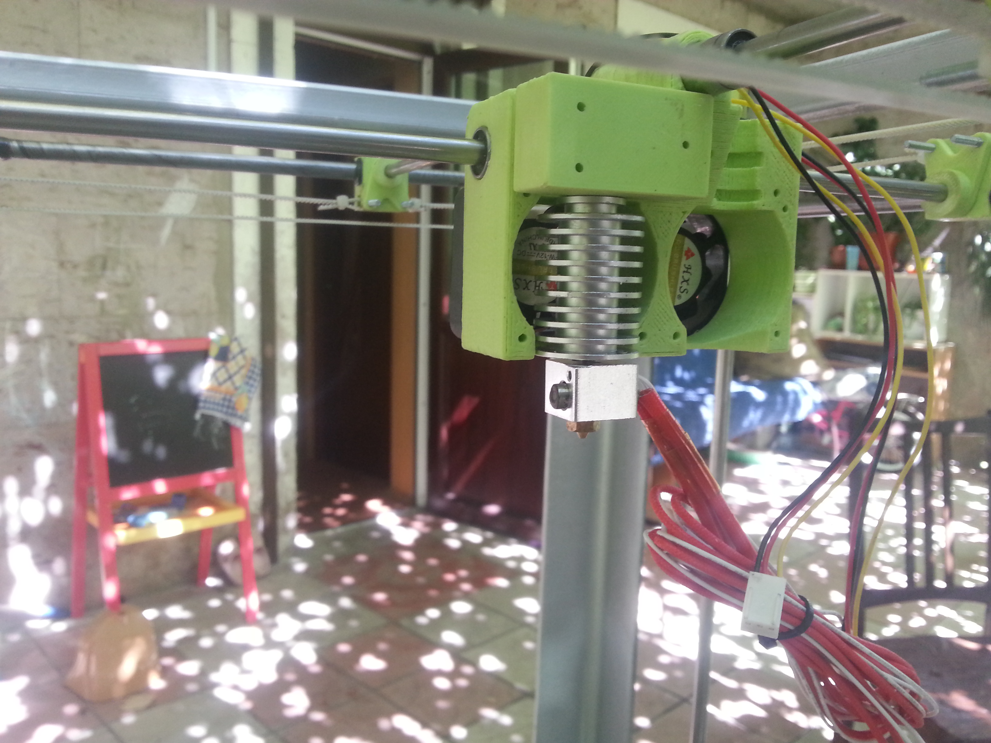 Переделан е3д радиатор (тефлон во всю длинну 3х2) и голова - бывший китай с заменой нихрома на стандартный нагреватель.